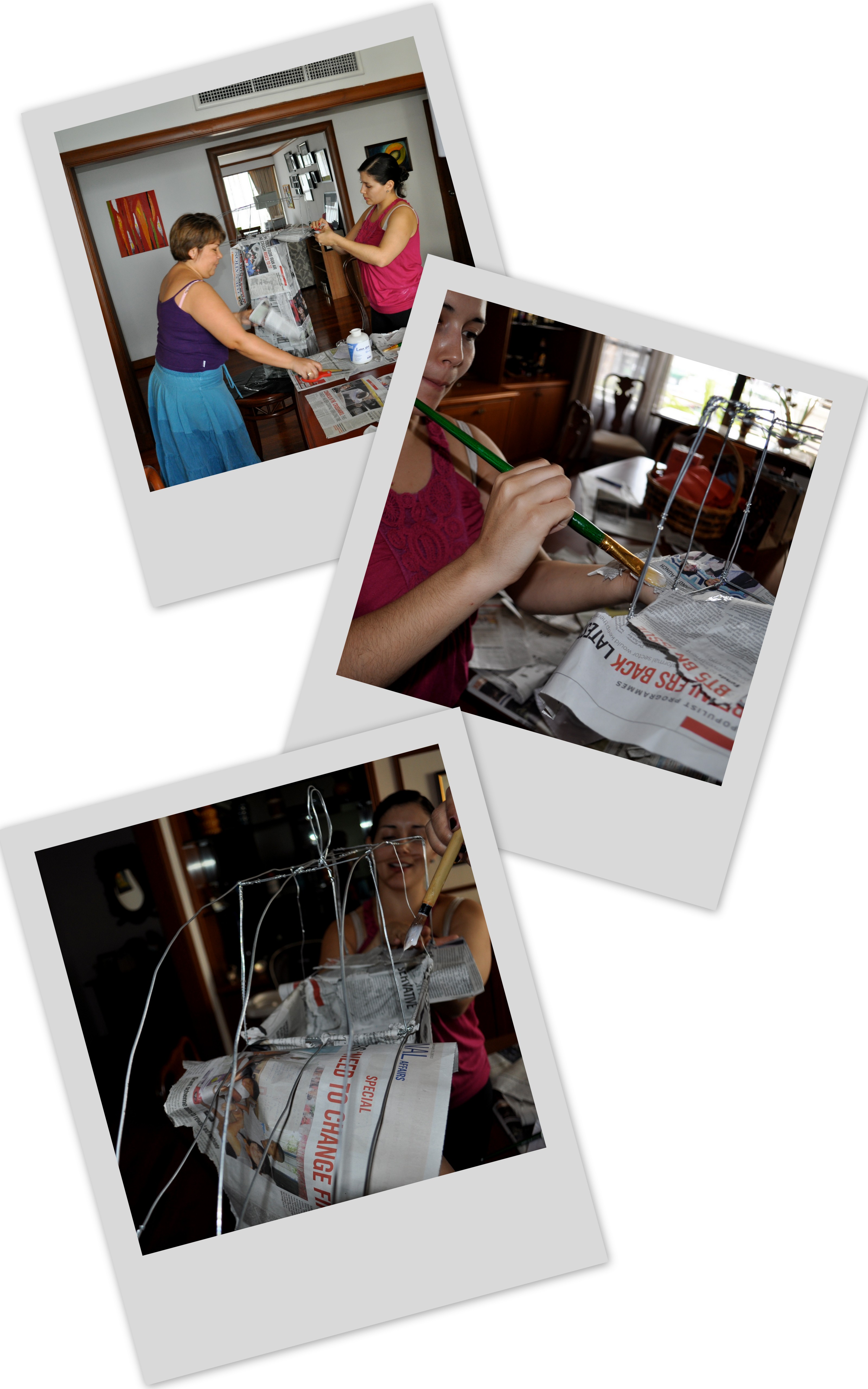 1. Make a Frame. Be creative. It can be any shape and size you want. For the hammer we used thin wire. For the Easter egg we used wicker I got from the basket market in front of our apartment building. (Do what you can with what you’ve got!)