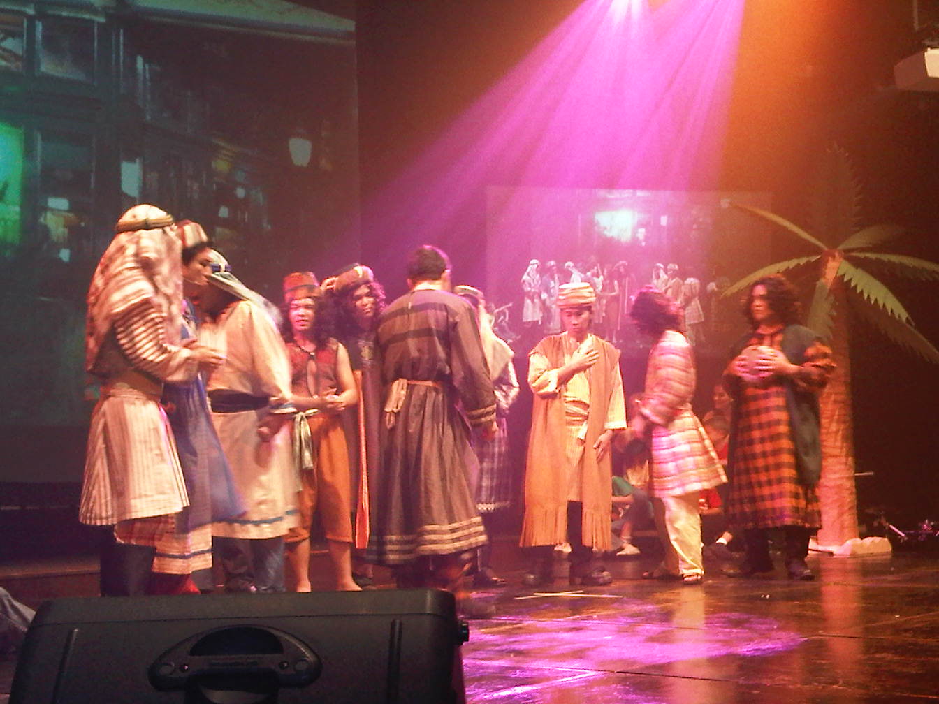 A mom and a dad enjoyed the musical Joseph and the Amazing Technicolor Dreamcoat at IES.