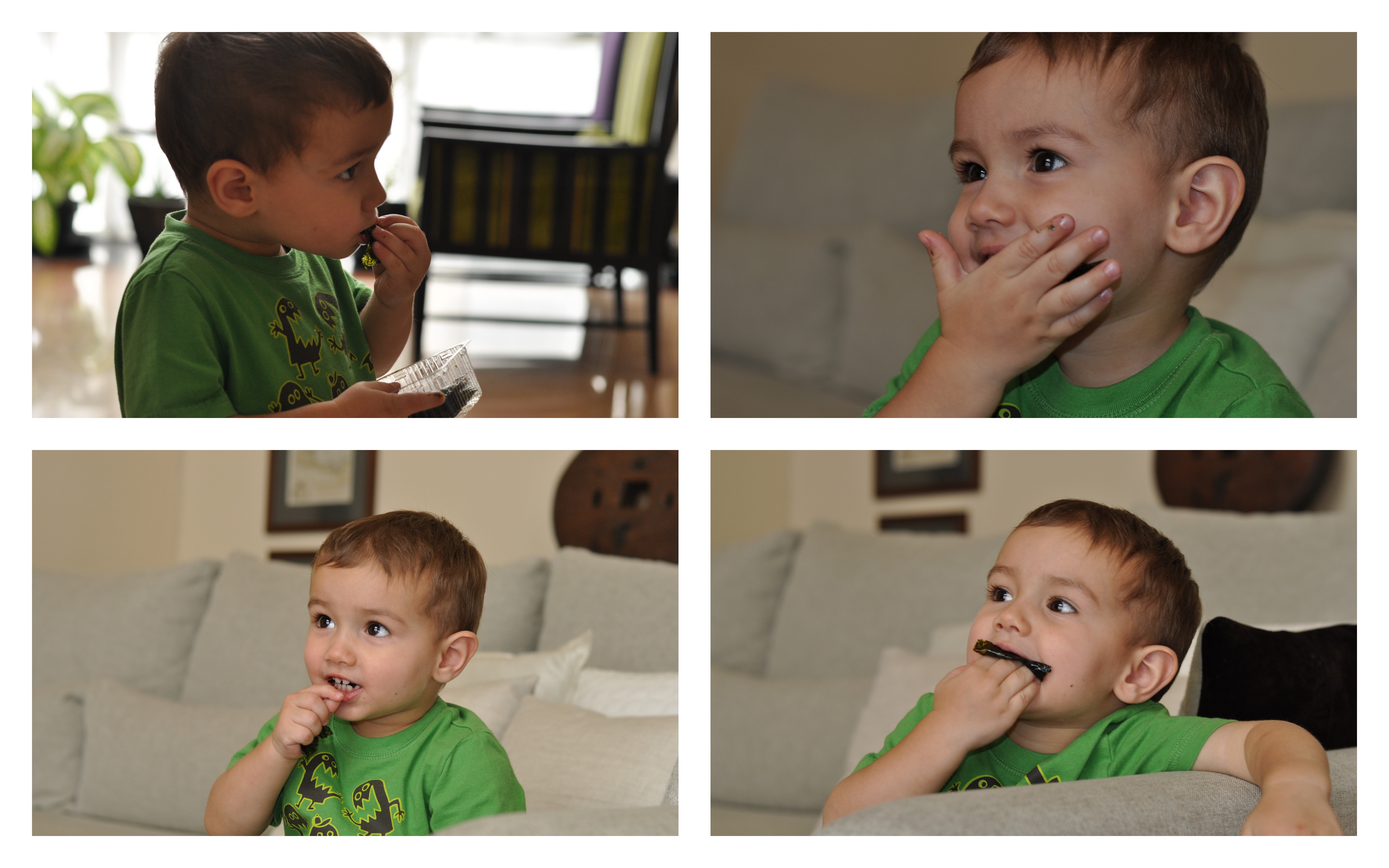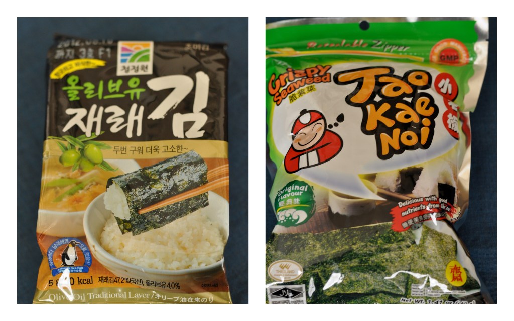 Evidence of Evan’s Asian roots (being born in Thailand and all), is his fixation with Seaweed snacks. They provide a satisfying crunch just like chips but with less than half the calories and sodium! Now that’s a good treat! Evan likes the laver variety roasted in sesame oil the best. He can eat two packages at a time! Mom likes the fact that they barely have any calories and that they are very tasty. I don’t have a specific brand I prefer for the roasted seaweed, however when we buy “crispy” seaweed, we like the Thai brand TaoKaiNoi the best.