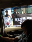 - An unaware Evan plays with his Ipod as demonstrators stand against the raise in fuel prices