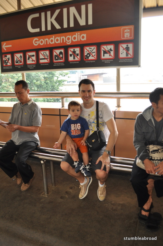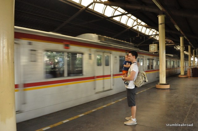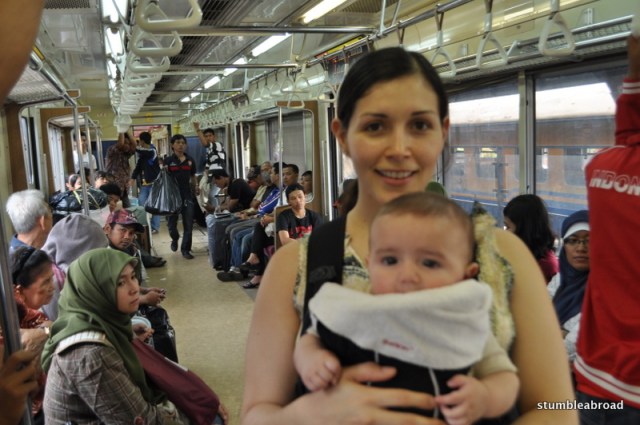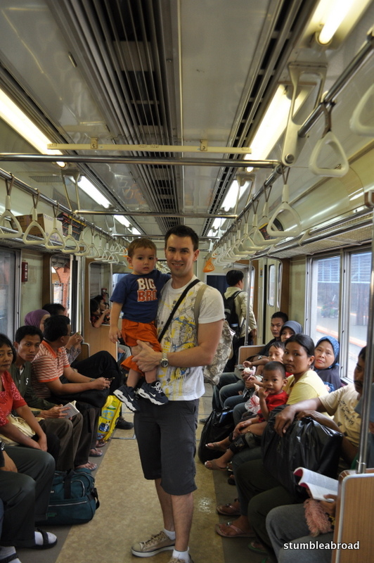 We decided to do it on a Saturday morning as to avoid the huge crowds. The train was full but not sardine-like full. Everybody was excited to see the bule family riding the train and we took advantage of that as they let Evan have a sit.