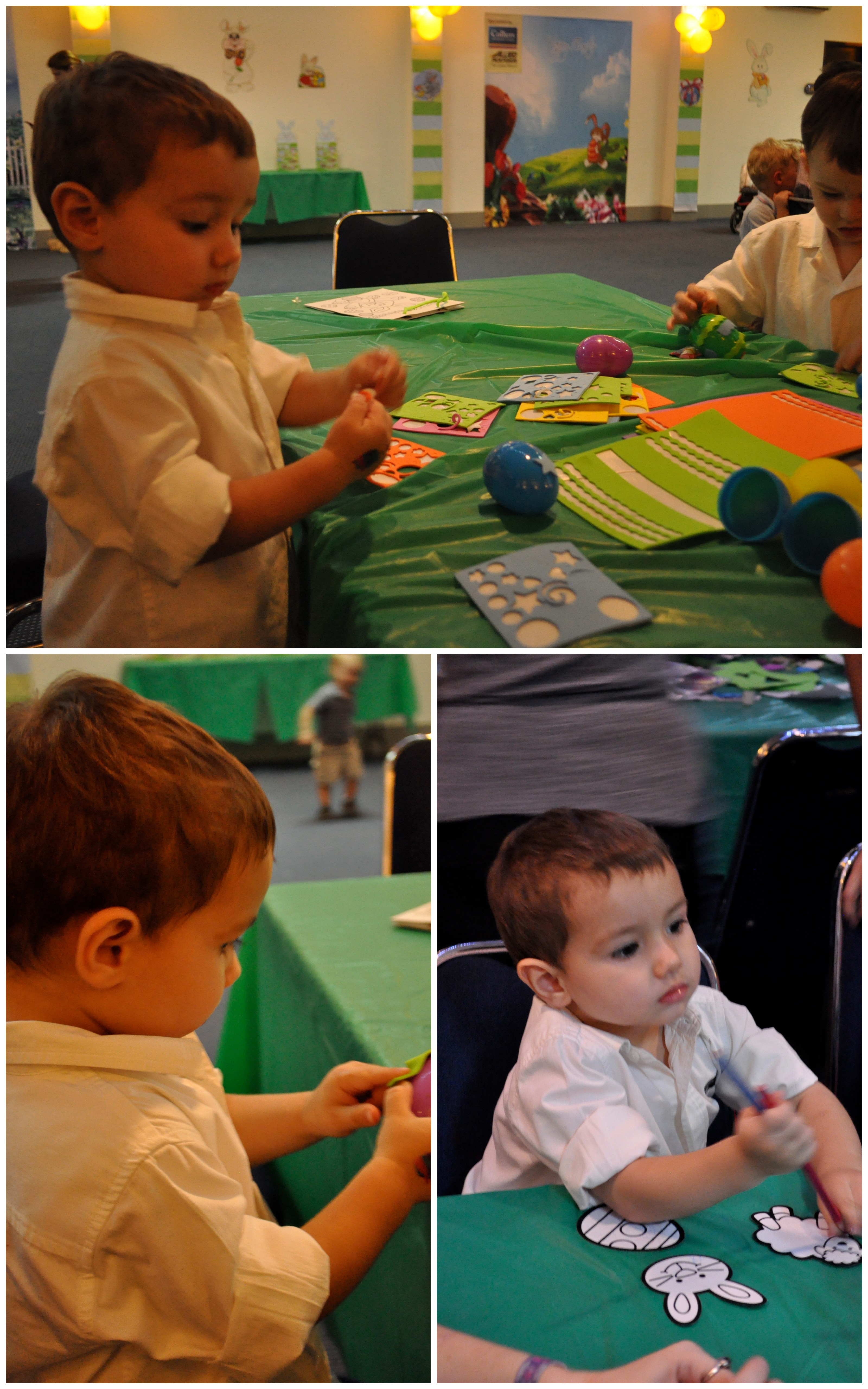 Evan has finally realized that he’s supposed to put the eggs in the basket and not just pick them up and put them back on the ground. He even did some crafting and overall had a great time.