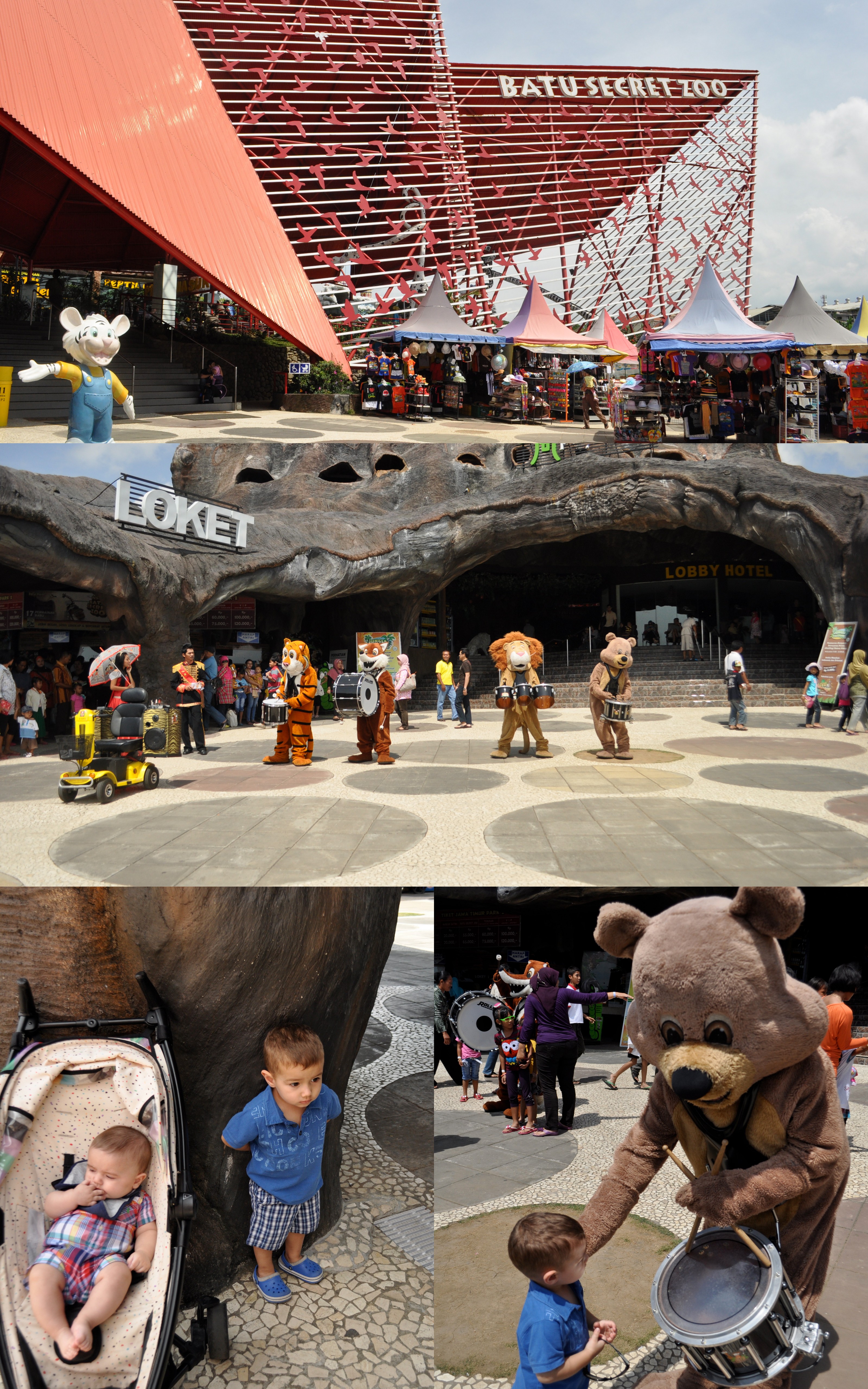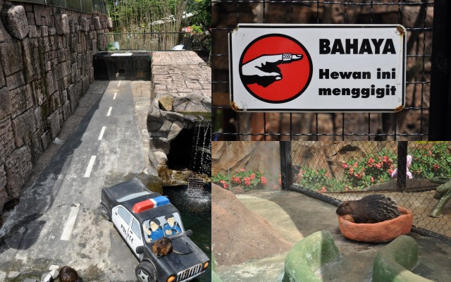 If you are in Surabaya for a few days, the Batu Secret Zoo is a must see! Although it’s a good two to three-hour drive from Surabaya you won’t regret making the trip. For only 120,000 rupiah per adult for the zoo and the museum (kids get in free), it’s a steal! This zoo has nothing secret about it as it is very popular among the locals so I would make an effort to avoid going during the weekend. The heat and humidity also make it a tough trip but there are plenty of shops where you can buy cool drinks and you can rent a motorized scooter and ride around without wasting much energy and speeding thru the crowds that just want to pinch your chubby babies’ cheeks.