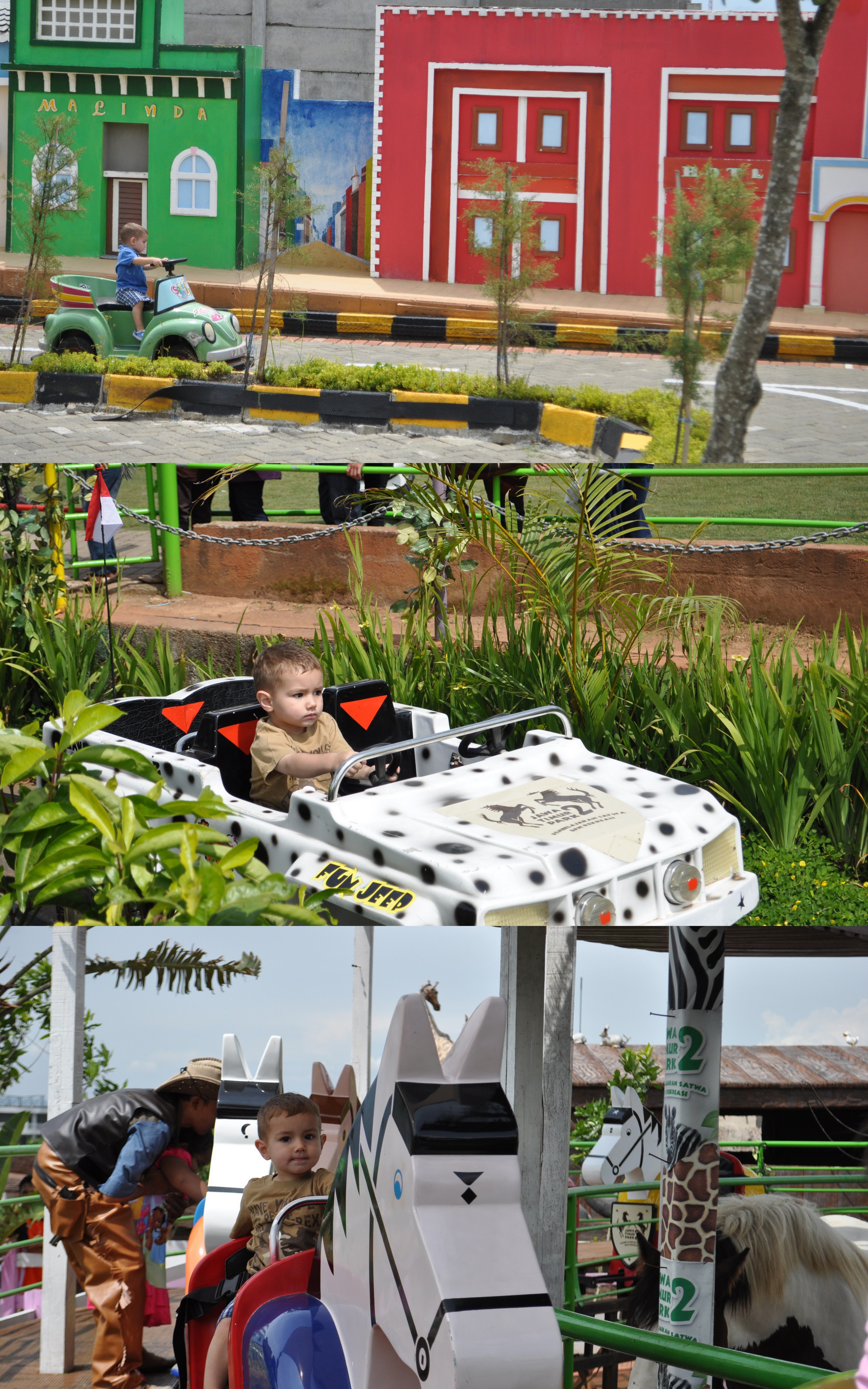 To leave the aquarium, you have to walk up a tunnel that is the home to thousands of insects. Evan wasn’t into them so we just walked past them. Soon after the insectariums, there is the reptile area but we avoided that, too. This is where we gave in and rented the electric scooter (100,000 rupiah for 3 hours). Evan was so excited about it that he rode on it instead of running away, yay! Soon after that, we breezed throughout Savannah and River Adventure and later arrived in Fantasy Land.