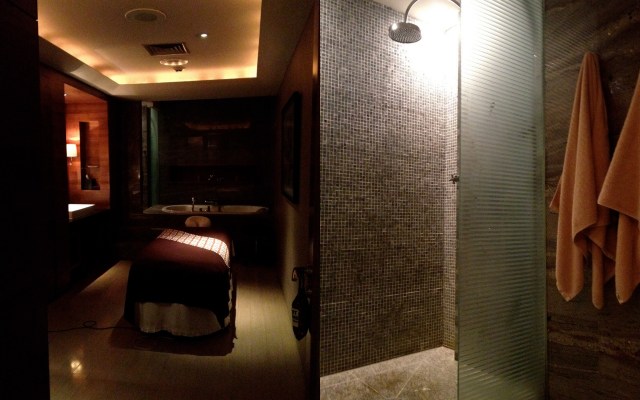 As we went to the locker rooms I didn’t even had a chance to regret not coming prepared for this. They had everything available, from disposable underwear to robes and slippers and deodorant, hair spray and body lotion. They have a Sauna, Steam Room and cold and hot Jacuzzi available for guests to use. As we changed into our robes, our couple’s room was being prepared. While we waited, we sat at a lounge area where herbal tea and current magazines and newspapers were available for us to enjoy.