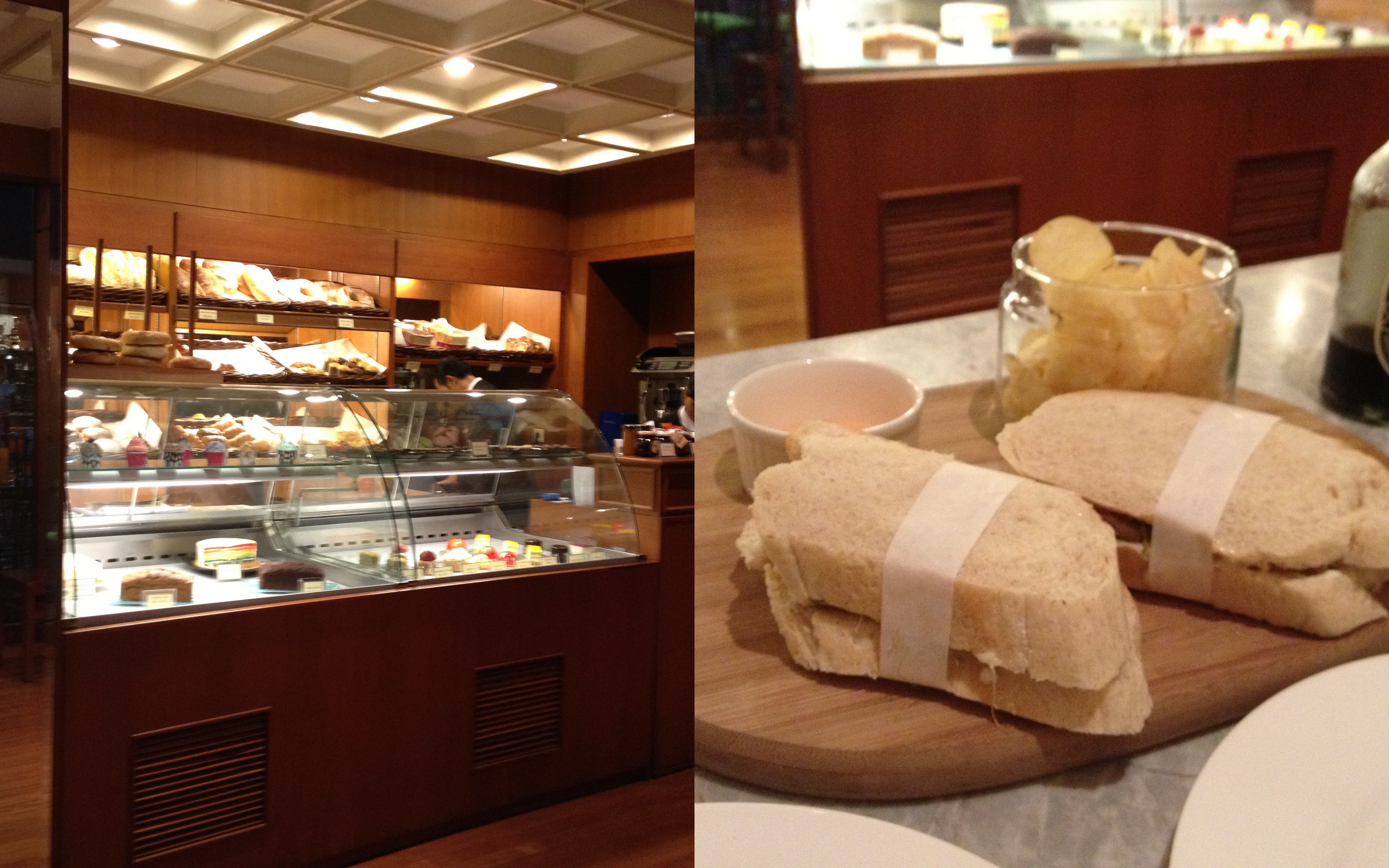 The Deli had a great variety of choices and we were a bit overwhelmed by the selection. They had all kinds of fresh bread and pastries and a lot of different kinds of cakes and desserts. We love sandwiches and the fact that they had over 15 choices was so exciting for us since they are not really available anywhere in Jakarta. We decided to share a soy chicken , alfalfa and vegetables sandwich. It was delicious and for 118 rupiahs ++ it was a great deal since we were sharing. We later shared a chocolate muffin and we each had our own drink. The drinks were quite pricey for our taste. Iced Tea was 50,000 rupiahs ++ and a Root Beer was the same price. Half of our bill consisted of  drinks.