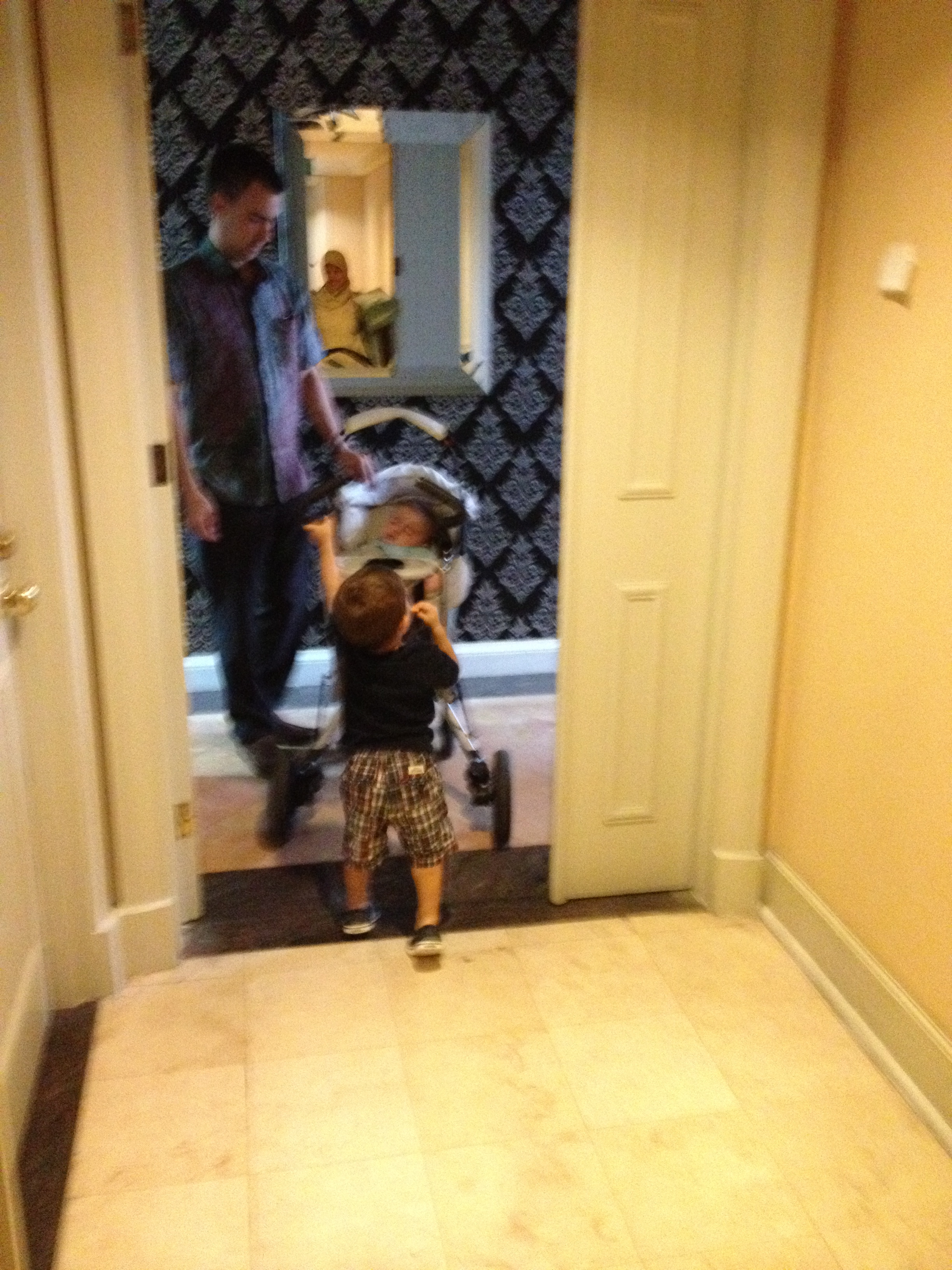 - Evan is a great helper! He loves pushing Josh’s stroller!