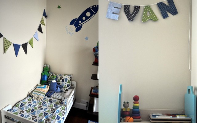 With a toddler and an infant at home alongside all my responsibilities at the different associations I work for, the transformation of the nursery into a macho man one has been the slowest in the history of me. When I thought we were having a girl the room was practically ready within 4 weeks. I had modified the sheets from the bedding set we bought to fit our oval-shaped crib, I had made special pillows for the queen bed in the room and I had even made special covers for the drawers on the changing table. Honestly I hadn’t been motivated to find a new theme and it was easy enough to use Evan’s old stuff until I figured out what I wanted to do. Until yesterday, Joshua’s room had pink curtains.