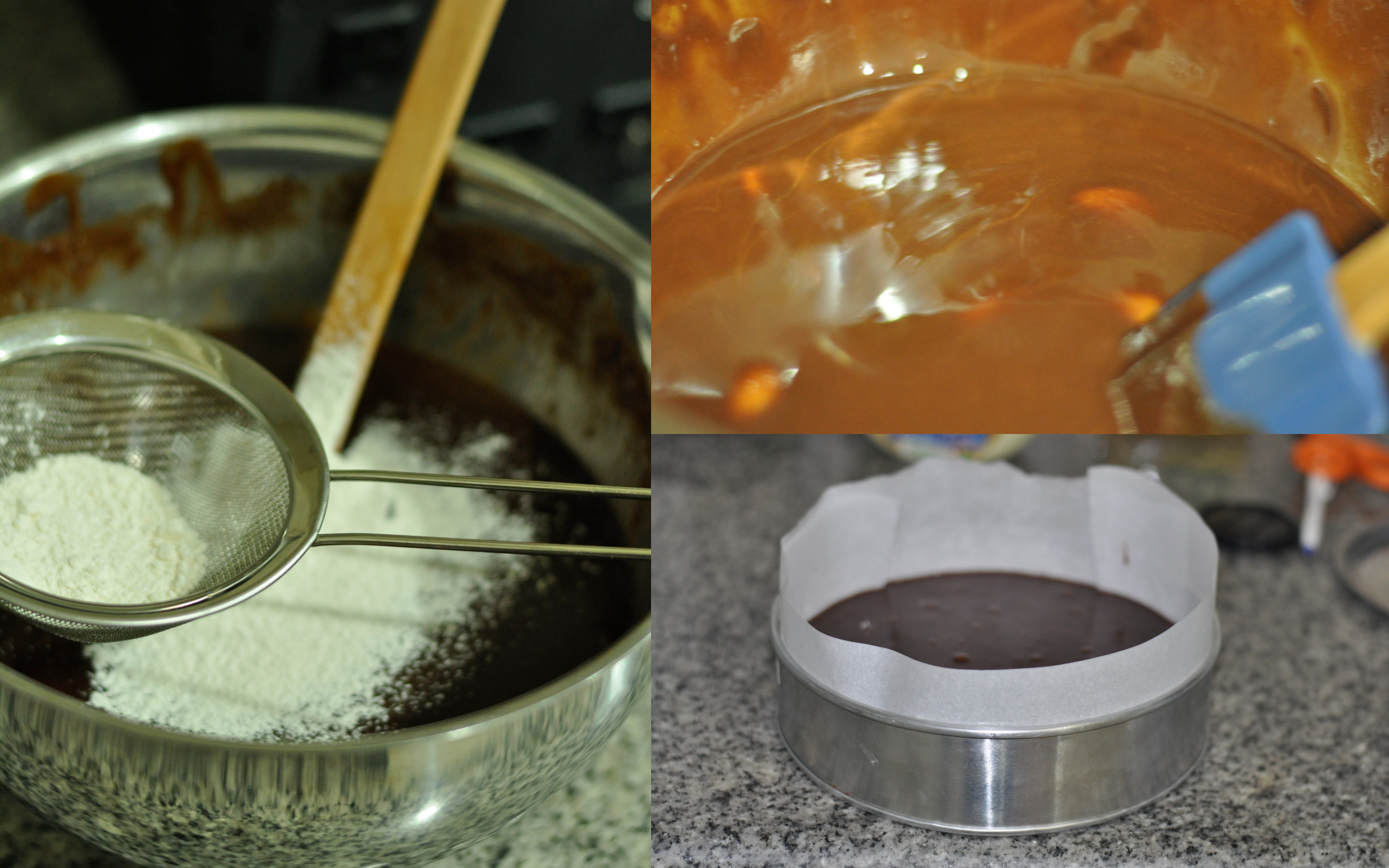 1. Preheat oven to 350 F. Grease and line the base and sides of a 8″ spring form cake pan. (I just used a round pan because I didn’t have any spring form pans)