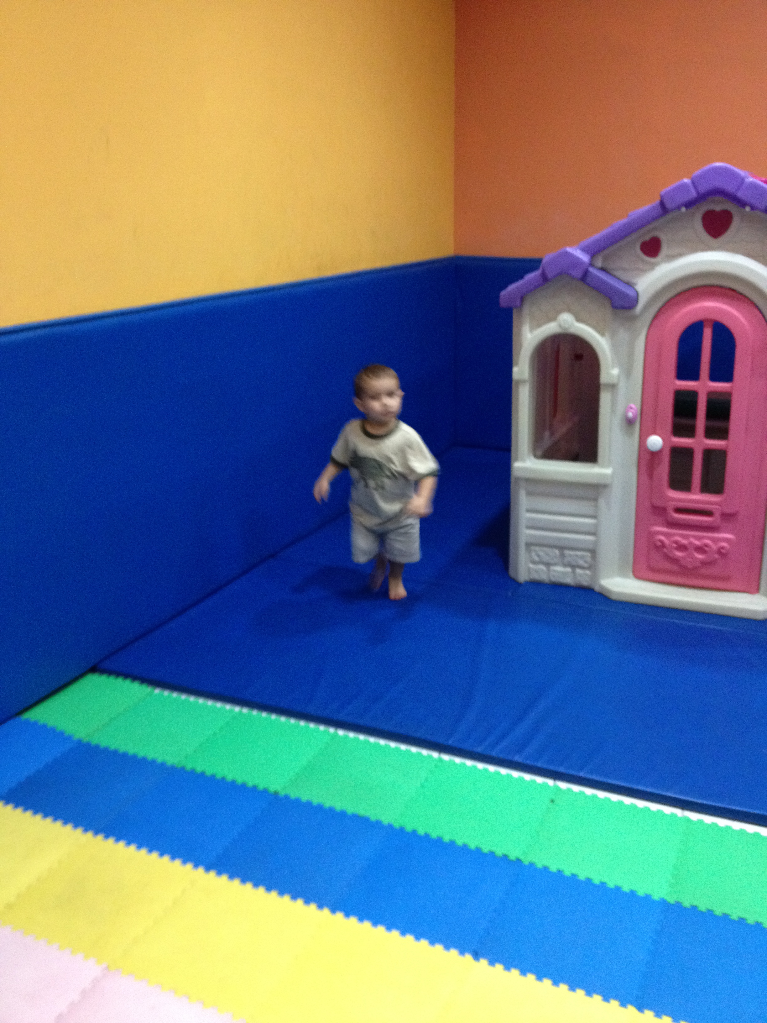 - Evan running around in the building’s playroom
