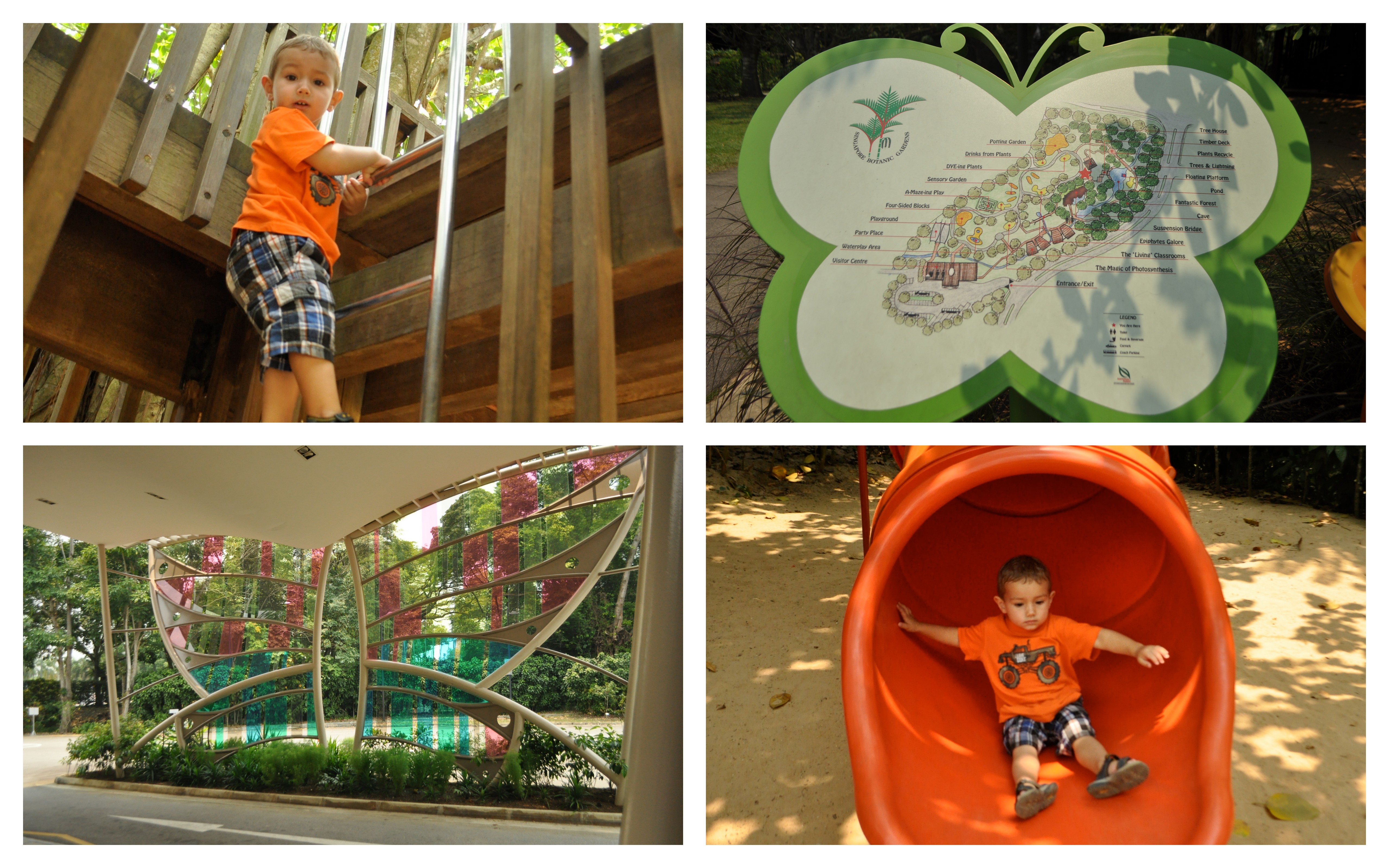 I found out about this place by my friend Kaho’s blog . I wasn’t able to visit it last time we were in Singapore so this time we made the effort to take Evan there. The children’s garden is located within the Singapore Botanical Gardens and is a fun little place to visit if you have a few spare hours. As you enter this magical place you are greeted by a beautifully manicured display of tropical plants and lovely signs explaining in kid-friendly language the importance of our eco-system and the beauty of nature. Of course Evan was drawn mainly to the water play area and the different playgrounds. It was a fun half-day filled with splashing, running and a short break in the cafeteria located outside the gardens. Make sure you bring a bathing suit and change of clothes and tons of energy to chase your little one around the mazes and playgrounds. For more information visit the Botanical Garden’s website.