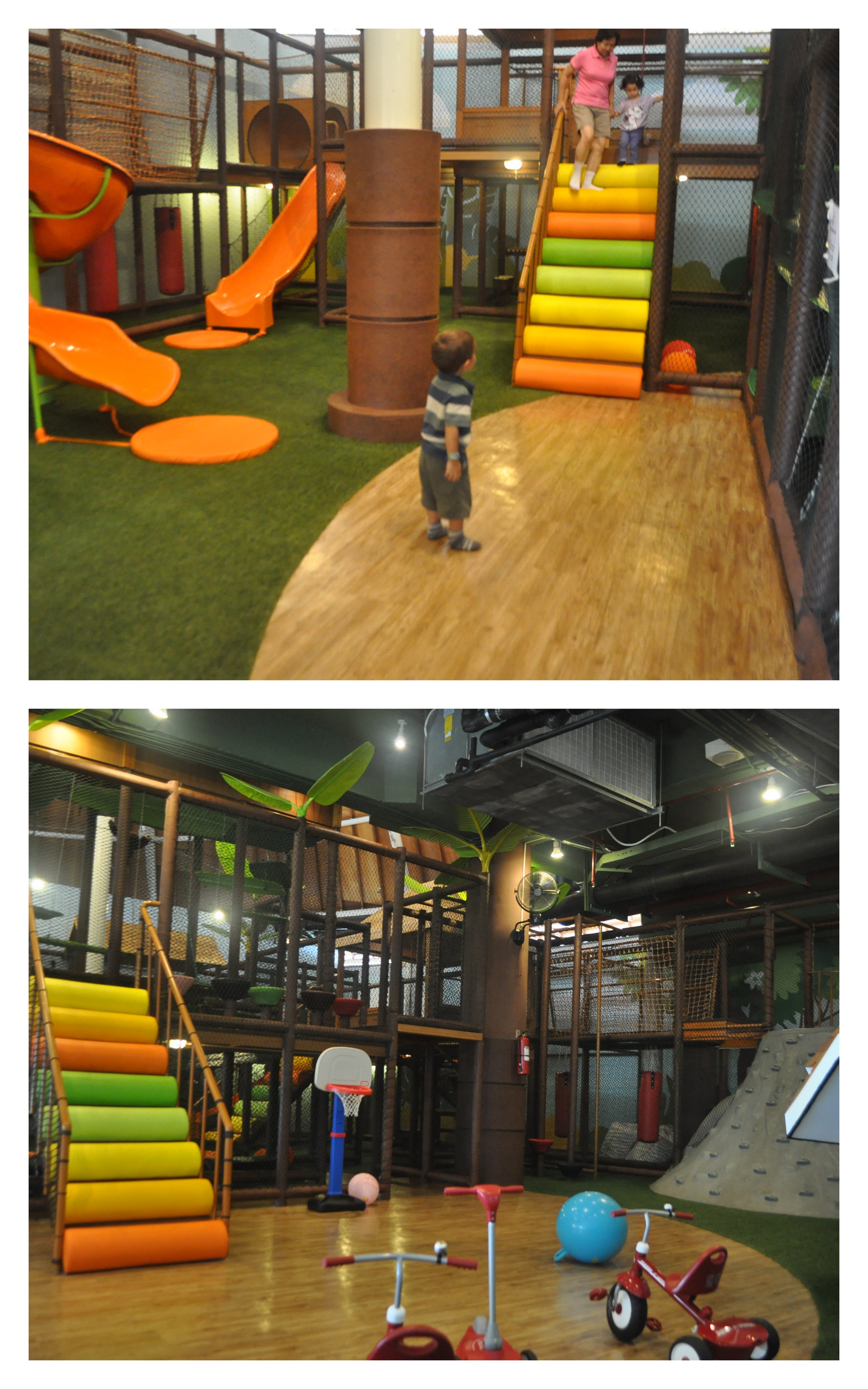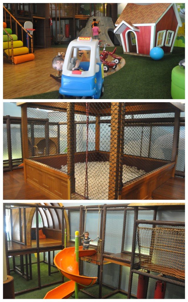 As soon as Evan saw the playground he knew he wanted to go inside. After coercing him into taking a few bites of food before going to the playground we headed to Mr.Crick’s Hideout. They have great slides and of course a few bikes and scooters that Evan was immediately drawn to. A nice ball pit and a great instrument area kept him entertained for a little while. He loved going up and down the mini-rock wall and just running around the whole playground. The staff at the playground was very nice and always eager to play with Evan. Every time I tried to go up on the second level they told me that I could go sit and that they would chase him around. They were excited to have an energetic boy on site and had some fun themselves.