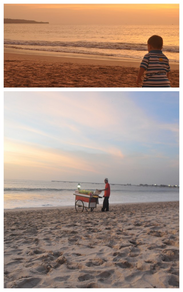 If you ask your driver for a place to go out to dinner, they will immediately take you to Jimberan. This place is a very popular tourist venue where the food isn’t the only attraction. You will be delighted by the view and the atmosphere as you sit on the beach and enjoy looking at the sunset while sipping Mai Tais and eating amazing grilled fish. Evan and Josh loved playing in the sand while we sat down, relaxed and wrote a mental note promising to come back again. Evan loved looking at the fish on the tanks and was delighted to be able to pick the fish we were about to eat. We had a red snapper and shrimp that were grilled to perfection and enjoyed it with Indonesian chili sauces and vegetables. When Josh started to get a bit cranky the lovely waitresses held and played with him so we could finish our meal. We left too early for it but there is a great fire show every evening. I still day-dream about that ikan bakar (grilled fish) and I can’t wait to go back and try something else!