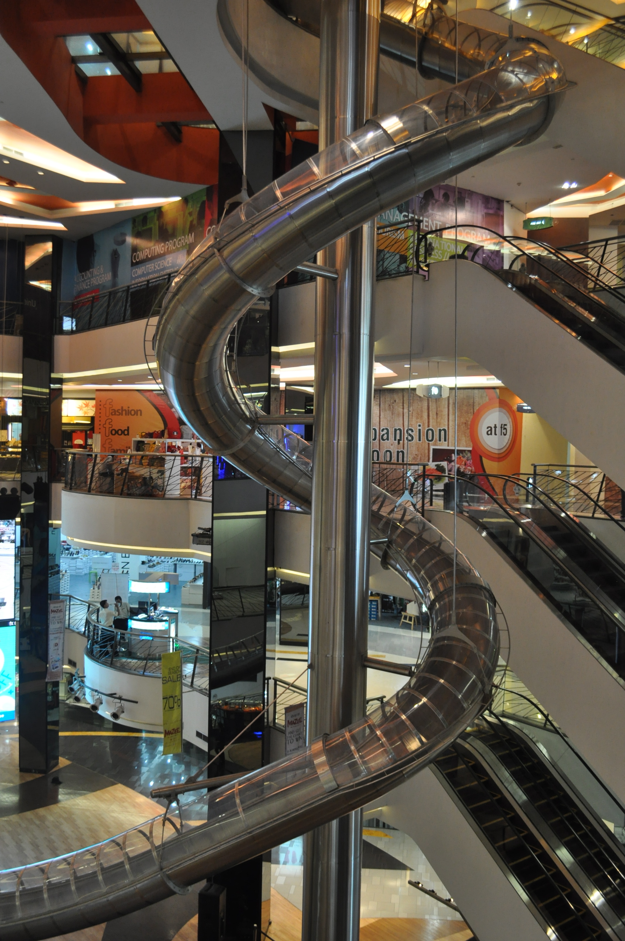 The highlight of this Mall is the 7 story high slide that’s available to any adventure happy customer. Although the stores are not very well known there are a few Indonesian boutique stores and great restaurants as well as a kid’s playground.
