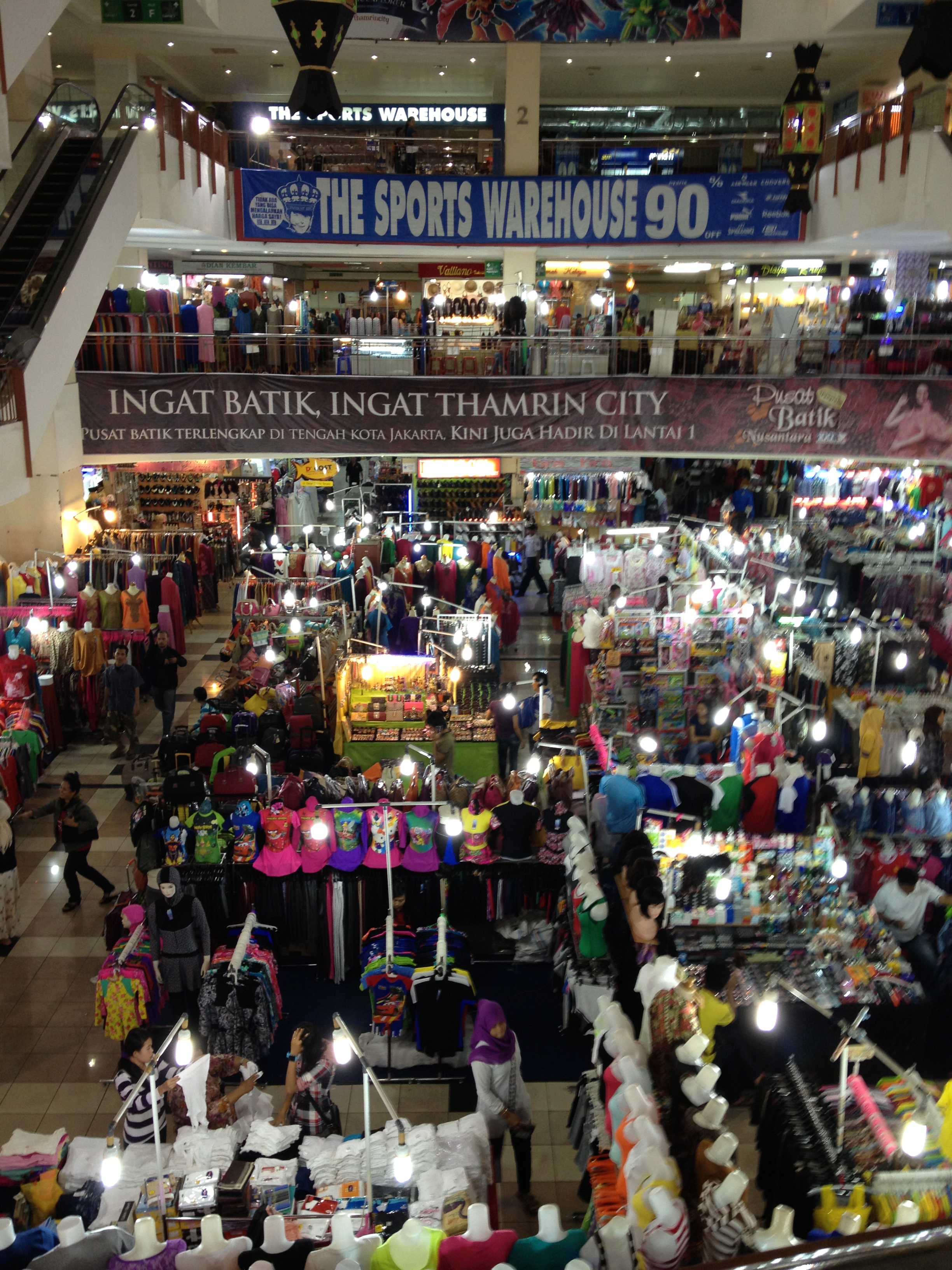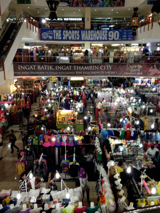Thamrin City is a hidden gem in the Jakarta city center for those looking to buy souvenirs and batik products. Eight floors full of small stalls offering products in every color and size make for a very fun visit. Credit cards are rarely accepted.