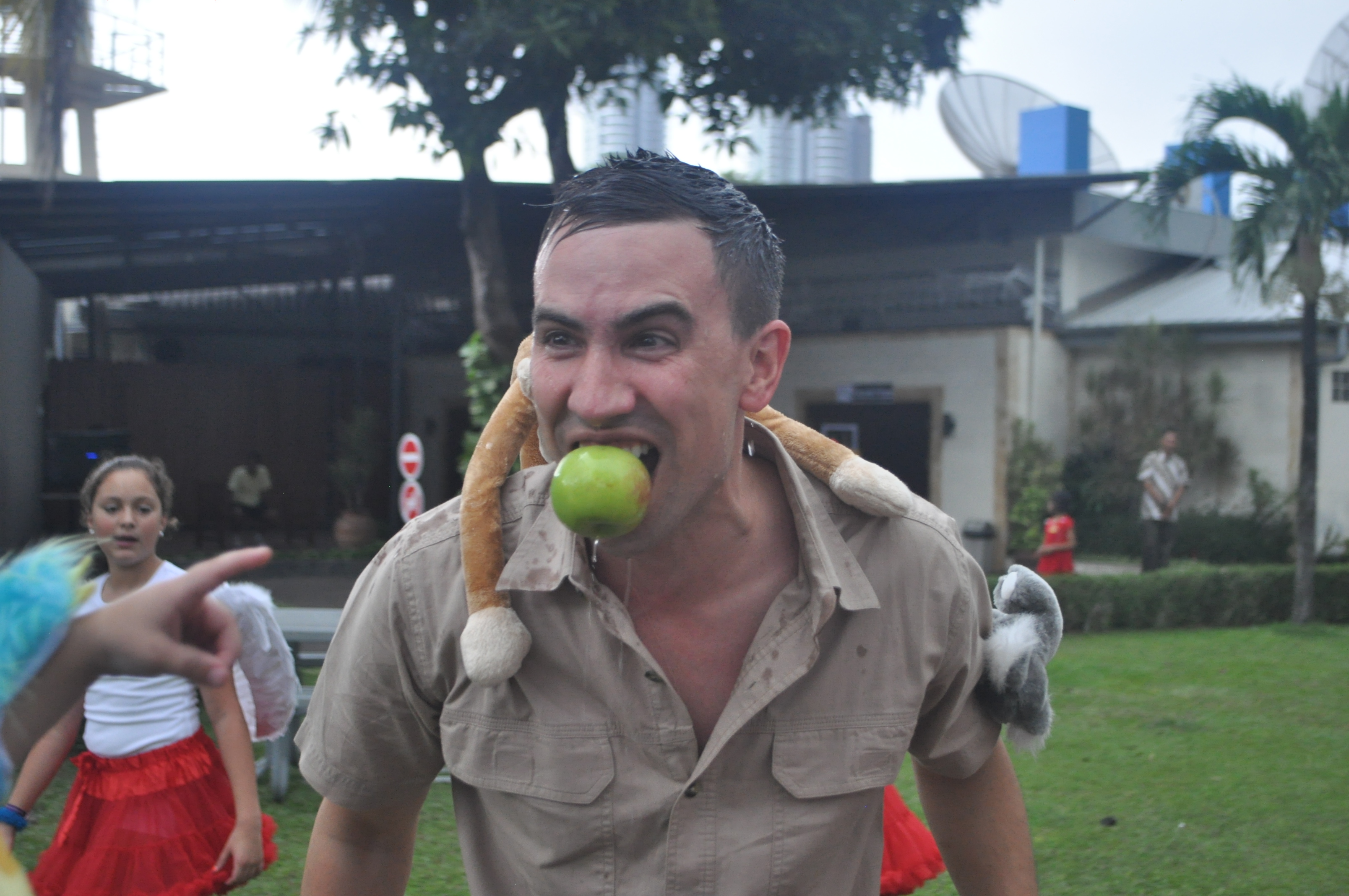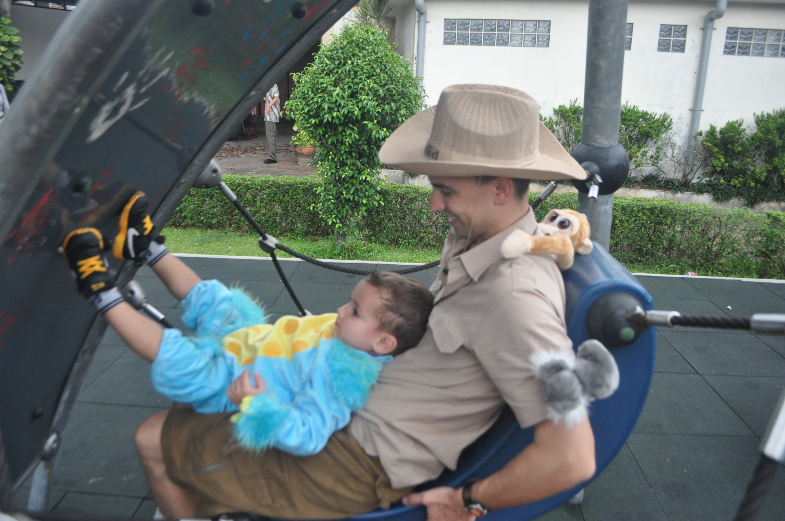It looks like we are back (almost)! I got my new computer last week the only problem is that I haven’t been able to install any programs because I got a MacBook Air and it doesn’t have a CD drive!!! I’m working on downloading stuff back in but it’s taking a while with my very slow internet connection. I hope to be back in business this week since I really want to recover my pictures and documents. In the meantime I leave you with some pictures of a very fun Halloween Party at the American Club and of a Tortilla Making Session with the perfect sous-chef Evan.