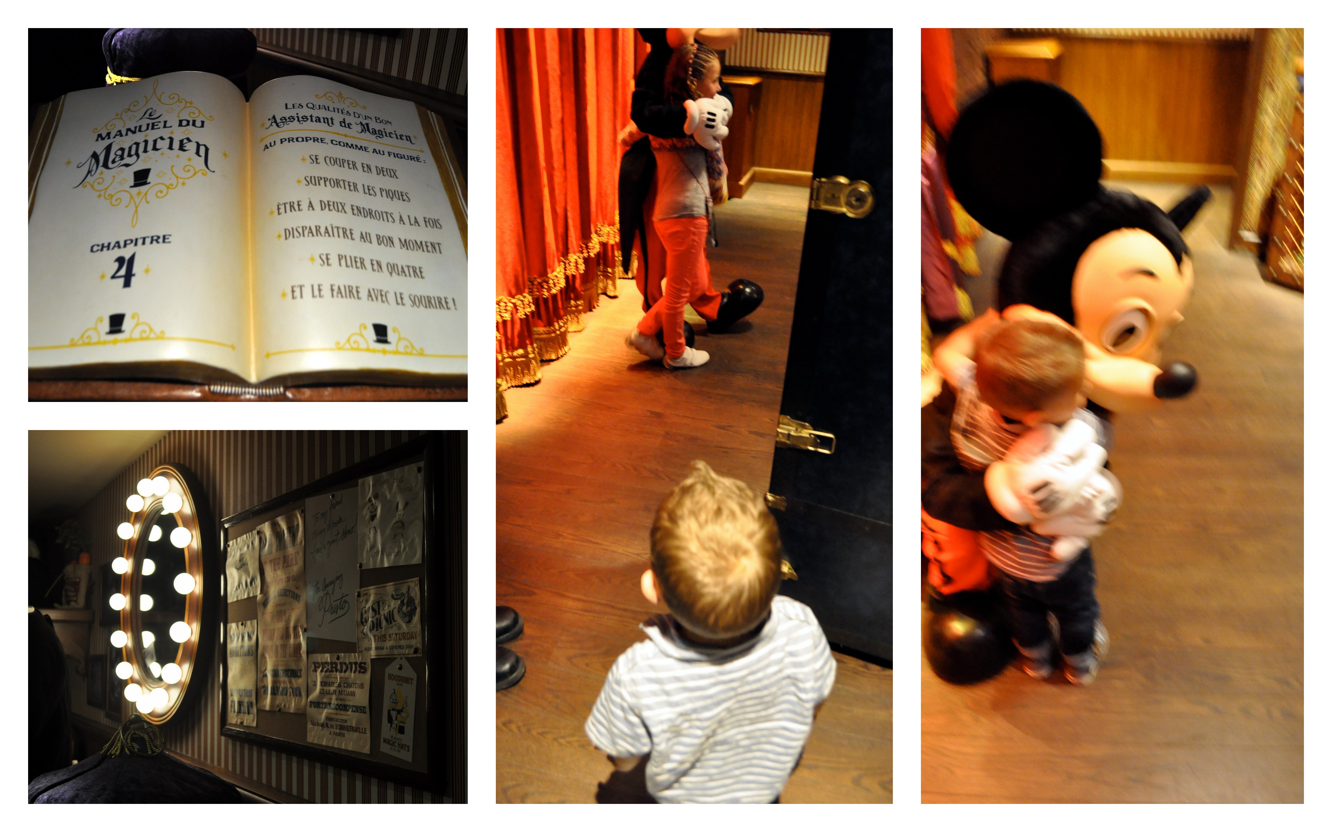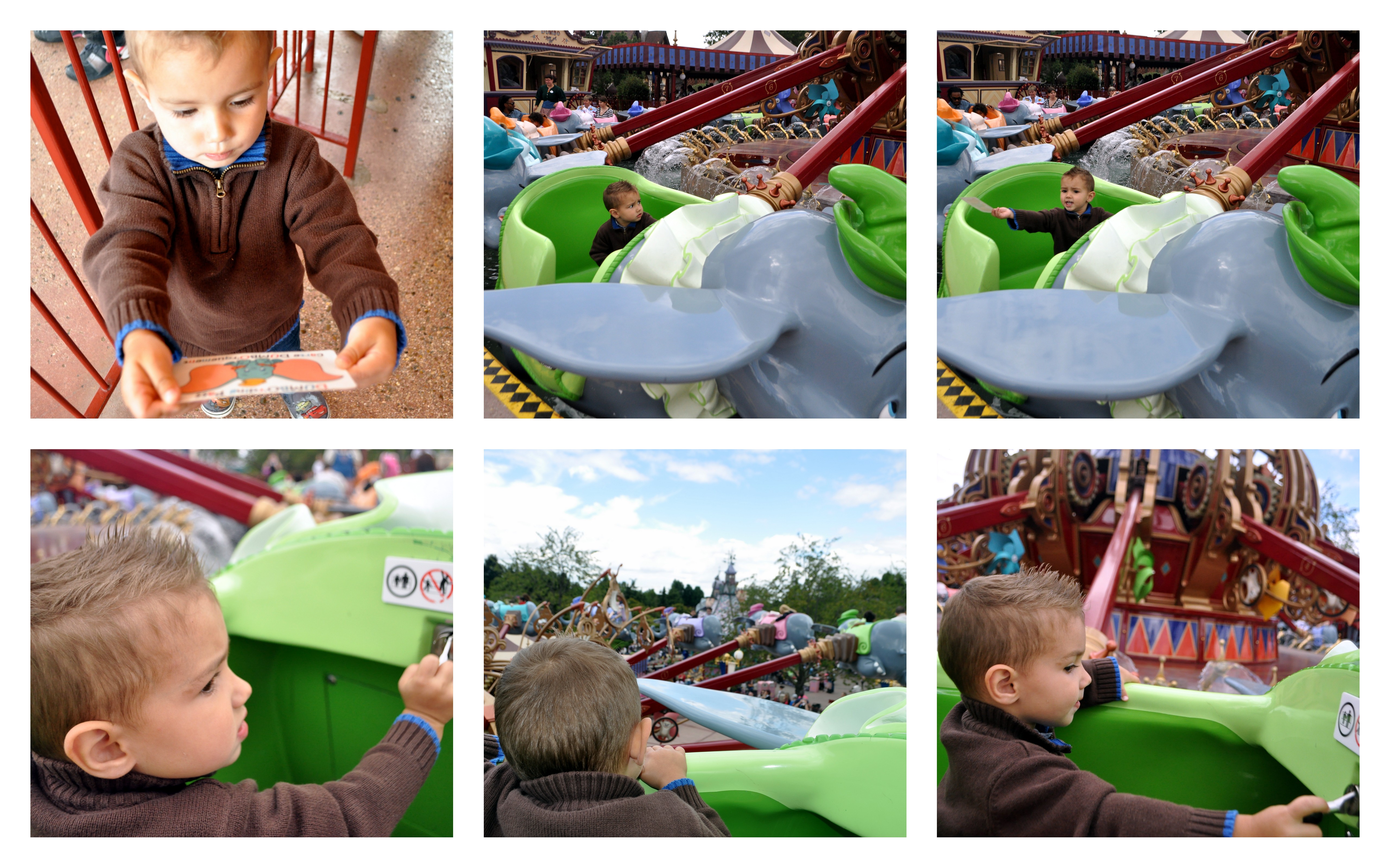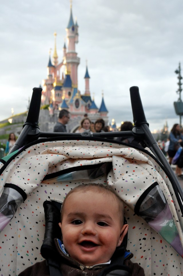 Although the day was a bit cloudy, you could feel the magic of Disney in every corner! Evan was so excited to see Mickey Mouse’s silhouette partout, Joshua could feel the excitement and was a happy camper and mommy felt like a little girl all over again. In defiance of the drizzle, the crowds of vacationing Europeans were unstoppable and made their way into the park slowly but surely. This didn’t keep us from having a fantastic time and stopping in every place Evan wanted to visit despite the long lines.