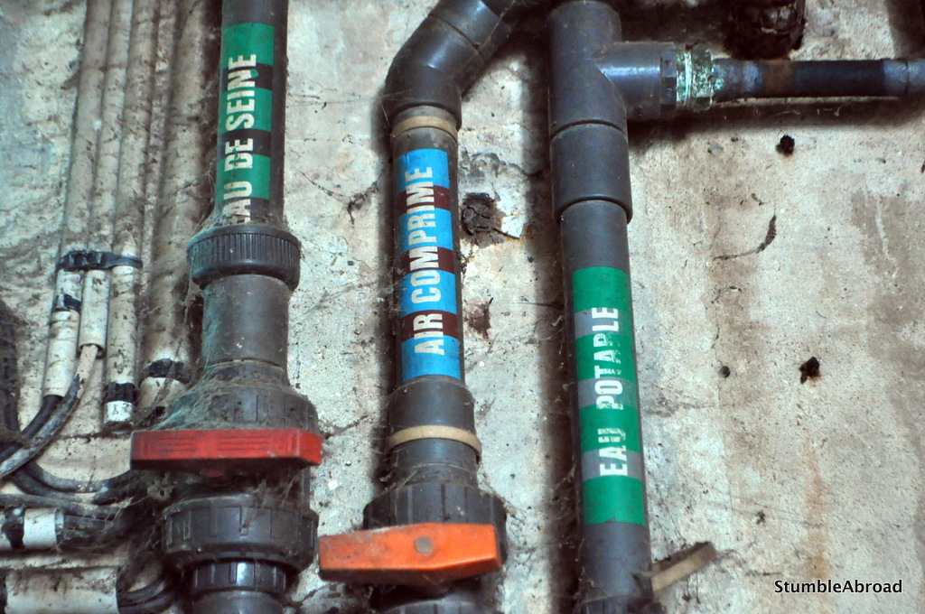 As you continue walking on the vertiginous chemin you find yourself surrounded by pipes and lots of tunnels. You can actually hear the water flowing and if you look down you will see the water and flowing just underneath you.