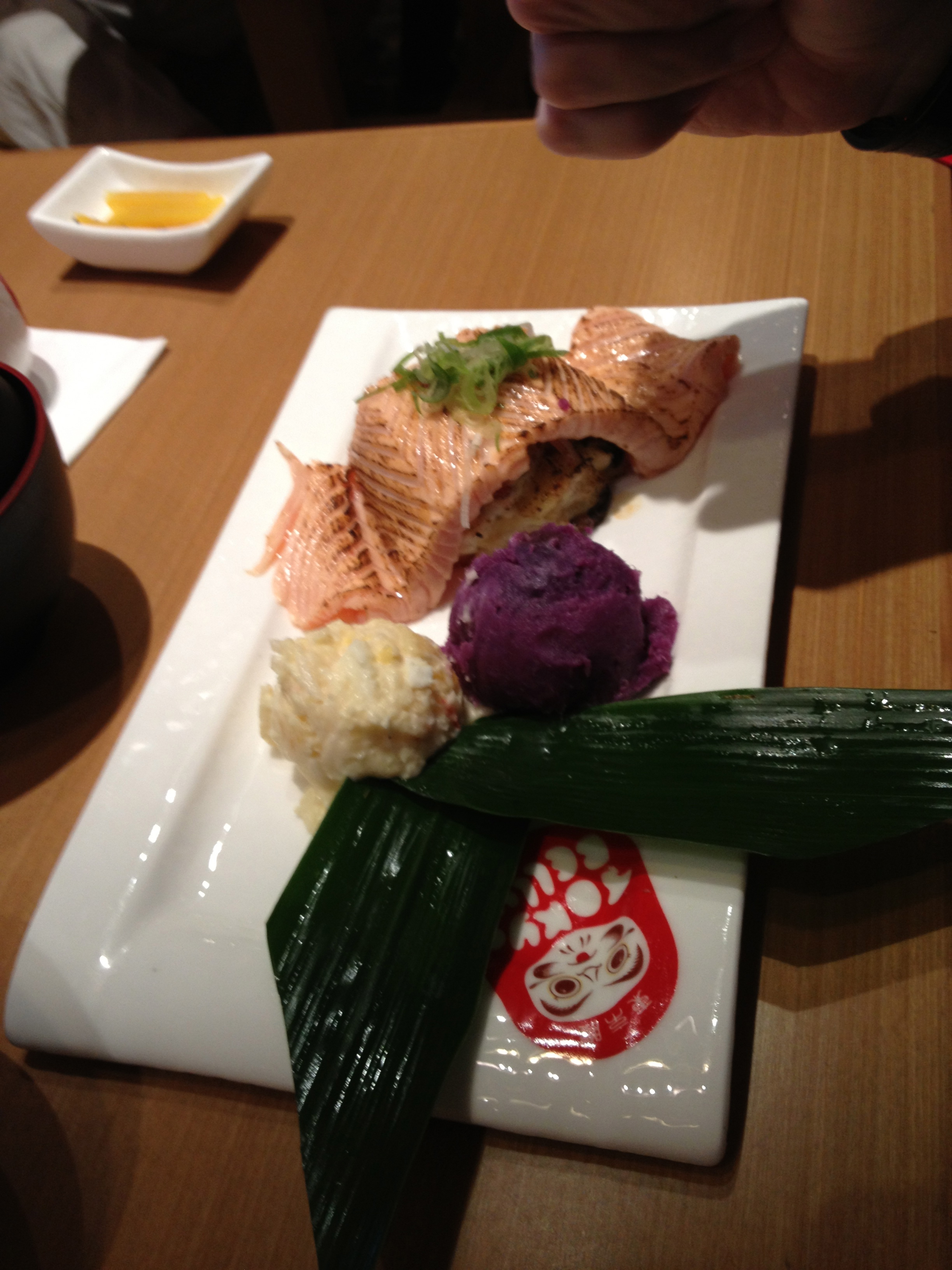 We were sited promptly and ordered soon after we got there. They had abundant baby chairs and we didn’t have any trouble getting the boys to sit down for a few minutes. With an eclectic menu including traditional Japanese dishes such as J-Dogs and Miso Soup to some very cool reinventions of food such as the sushi taco we opted to order a little bit of everything.