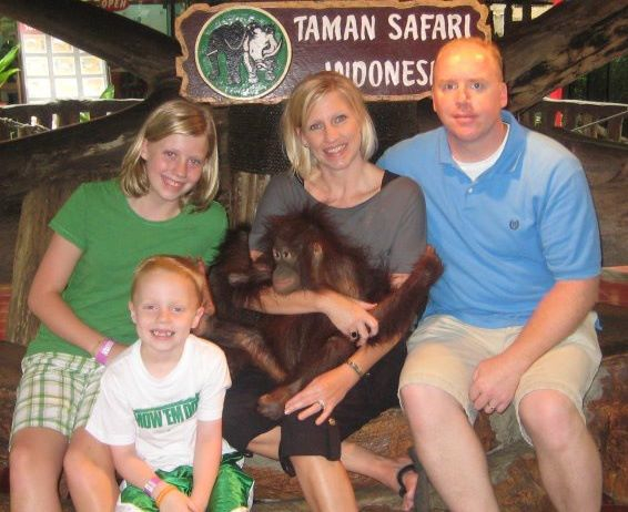 I’m a Southern Girl! I grew up in Louisiana. I am the baby of the family growing up with two older brothers. They taught me the love of all things SPORTS, especially football. I love cooking good ol’ Southern foods such as Sausage Gumbo, Red Beans & Rice, and Jambalaya. My parents moved overseas with Chevron Oil Company when I was seventeen. While spending time in Lagos, Nigeria with my parents, I met this amazingly cute U.S. Embassy Marine Guard, Tim. We kept in touch when I returned to the states to finish college. We made it through the, “long distance relationship” thing and married as soon as I graduated from college. We have moved from Chicago to California (insert two kids =)) to Virginia and arrived in Jakarta in September 2011. As far as for what we look like…….BULE! We are a blonde and red headed Irish family using lots of sunscreen living here. I think we are all quite nice looking if I must say so myself. =)