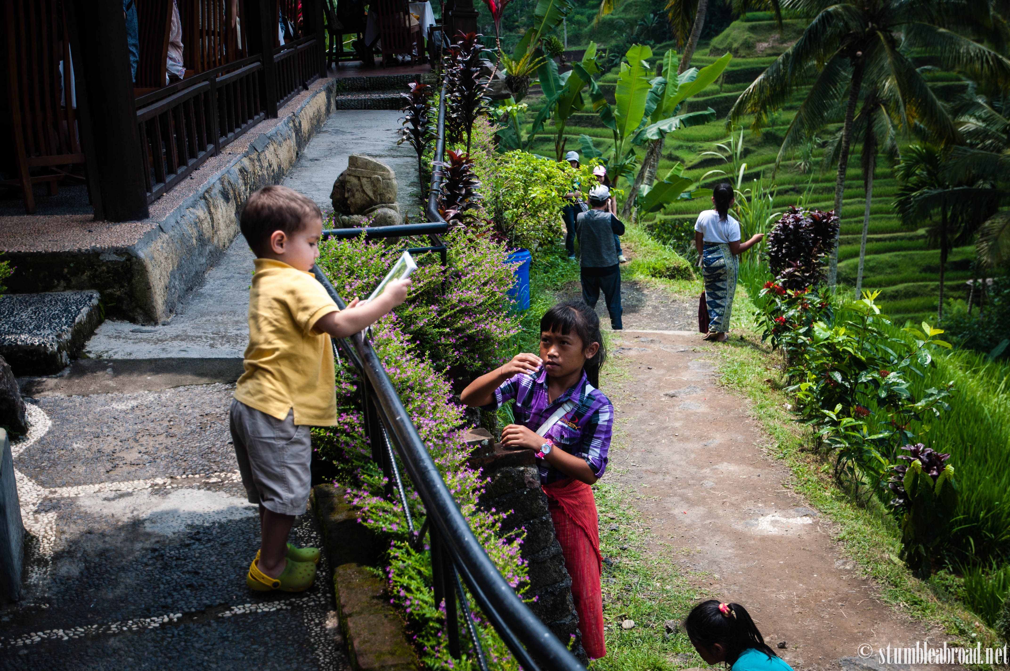 This time, we did a couple of different things. A first for us, was having lunch by the rice patties. What a wonderful experience. Not only was the food delectable, the view was astounding. Evan and Josh had tons of fun looking at all the locals walking by and I just enjoyed watching the boys grow stronger and more independent by the second.