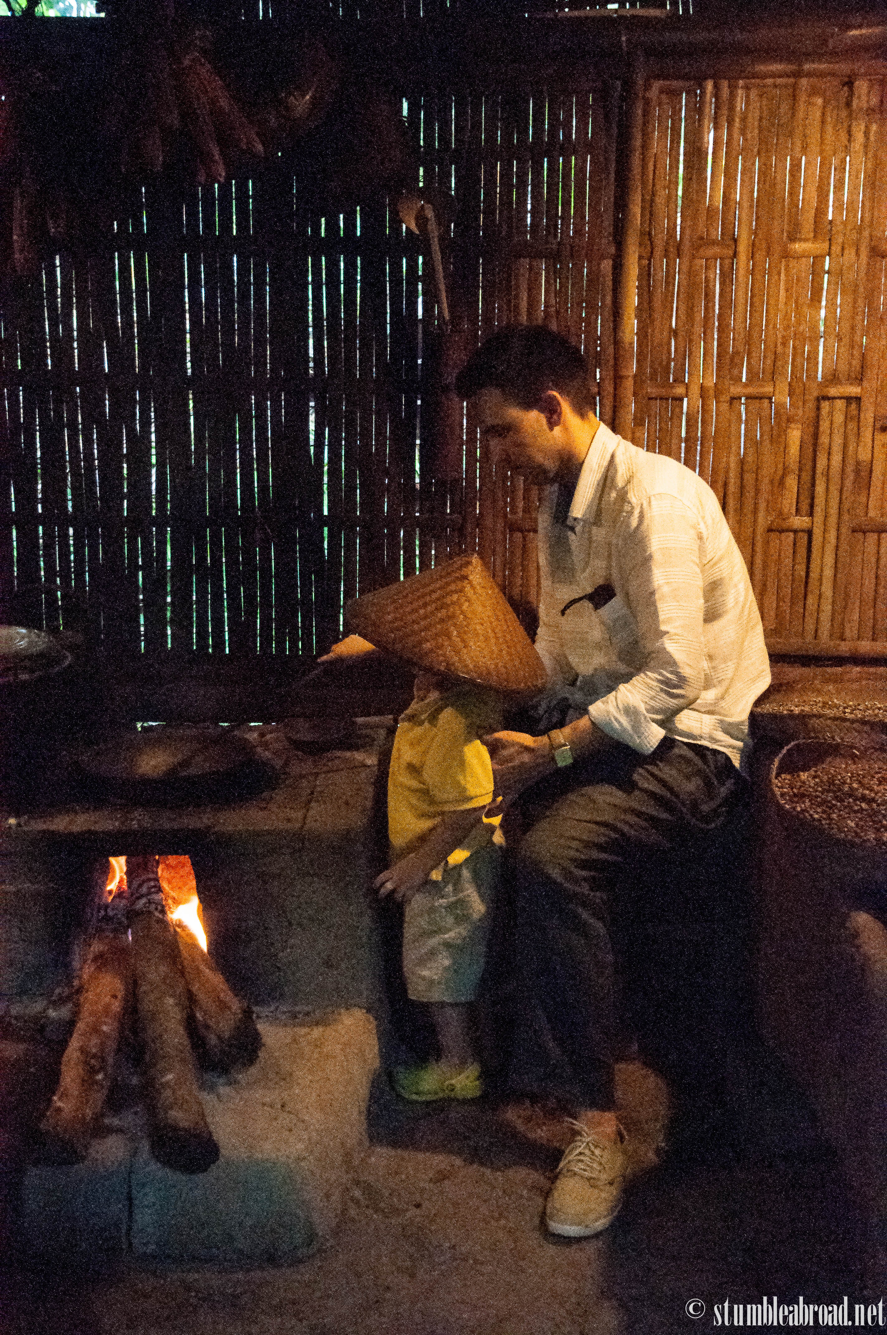 Comme d’habitude, we stopped at our now favorite place in Bali, Bali Pulina, our preferred agro-tourism venue in Bali. Evan loves to visit his friends the civets and feed them beautiful red coffee berries. Our little roaster boy roasted some coffee beans and we enjoyed the view while we avoided the tropical rain.