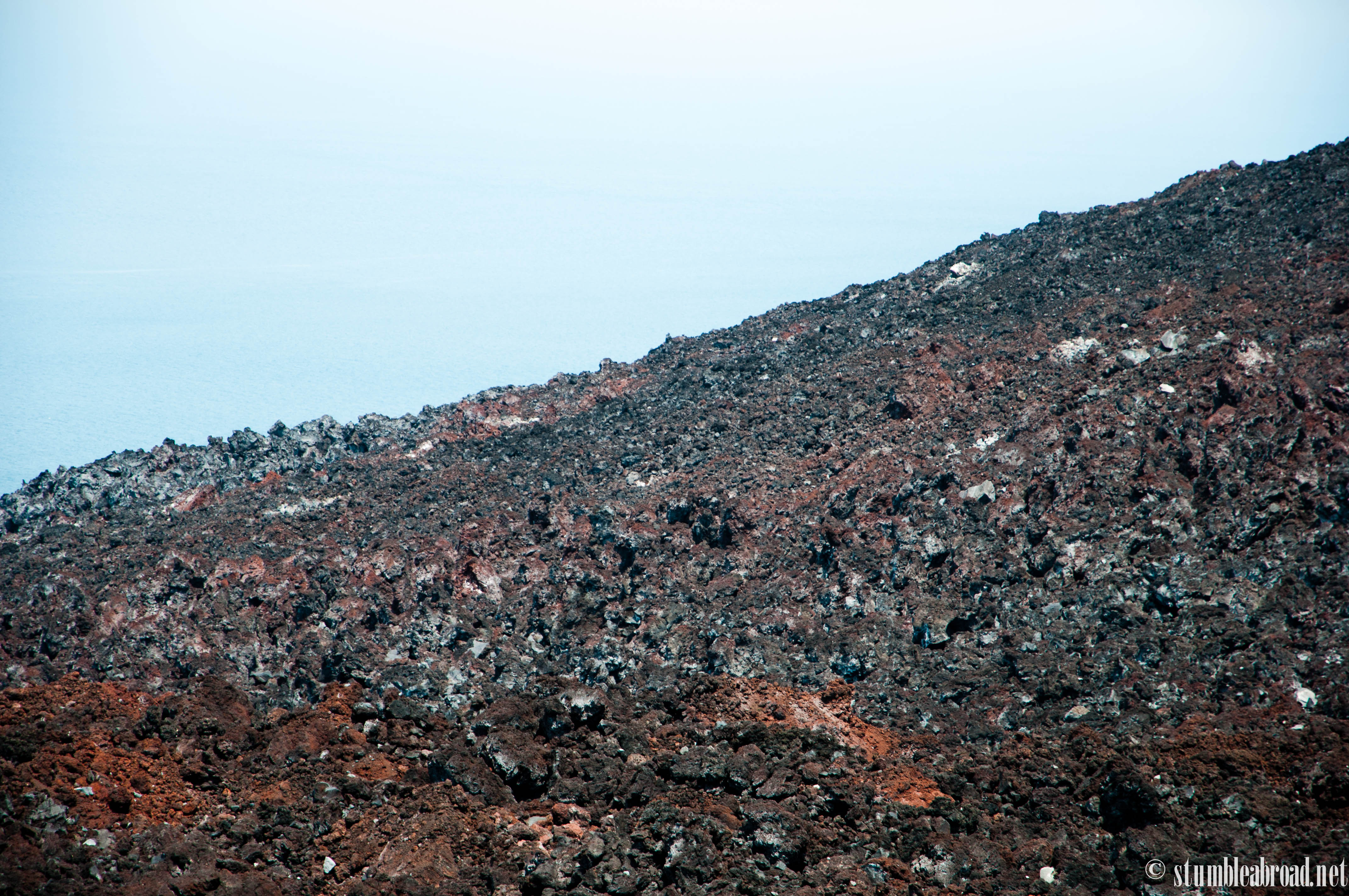As we got closer and closer to the peak the terrain started getting steeper. The sand was looser than in the bottom and there were many rocks all around. The trees were gone due to previous eruptions and sandy dunes became the norm. As we walked on some of these dunes our feet slipped since the sand was not very firm.