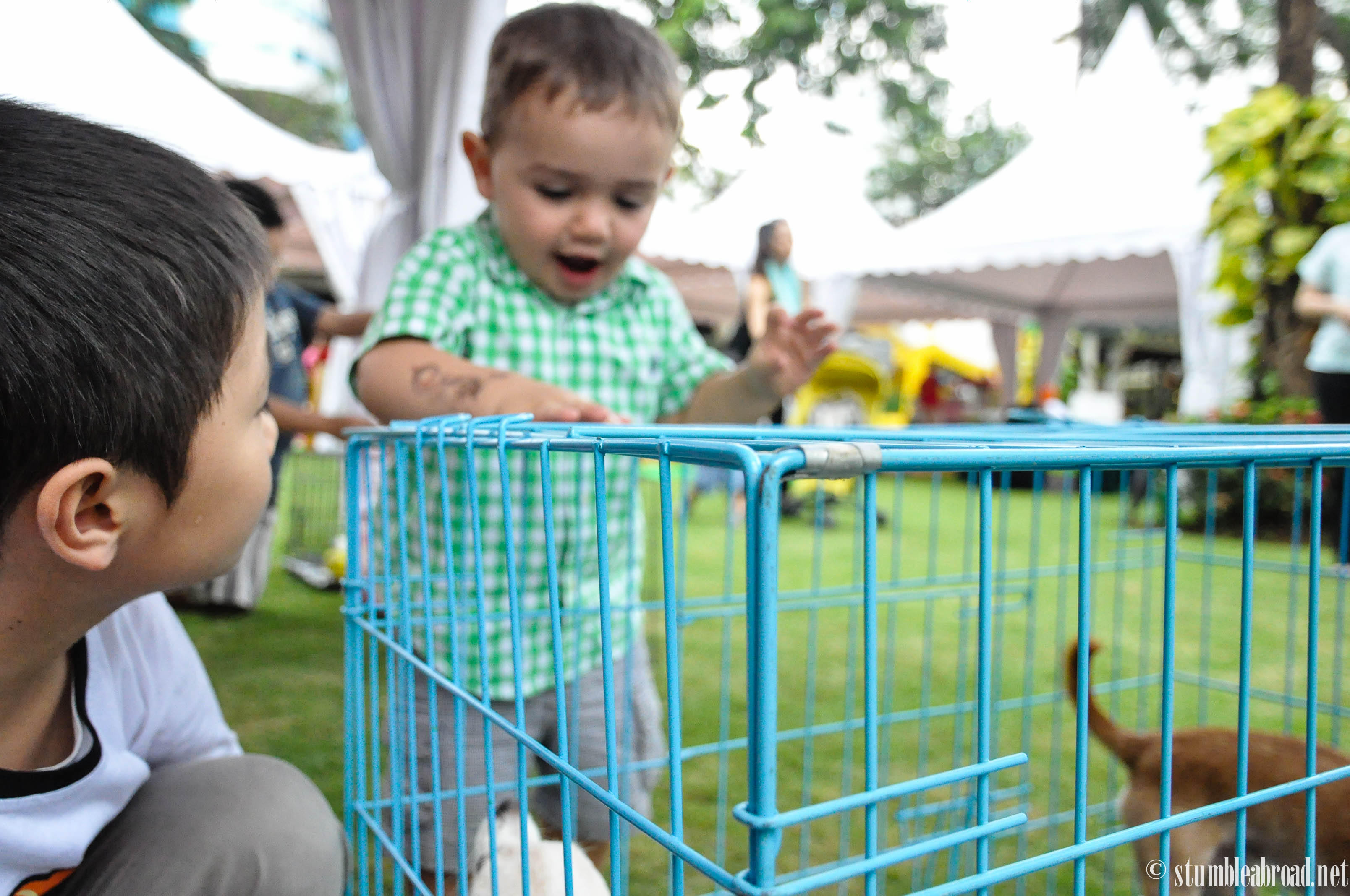 My animal loving boys were incredibly fascinated by the petting zoo on site. They had all kids of animals from puppies, to bigger dogs, rabbits, turtles and even lizards and snakes. This was all supervised by a few staff members who made sure the kids and pets didn’t attach each other! Josh was so excited to see puppies up and close. Evan was very intrigued by the snake but decided against holding it.