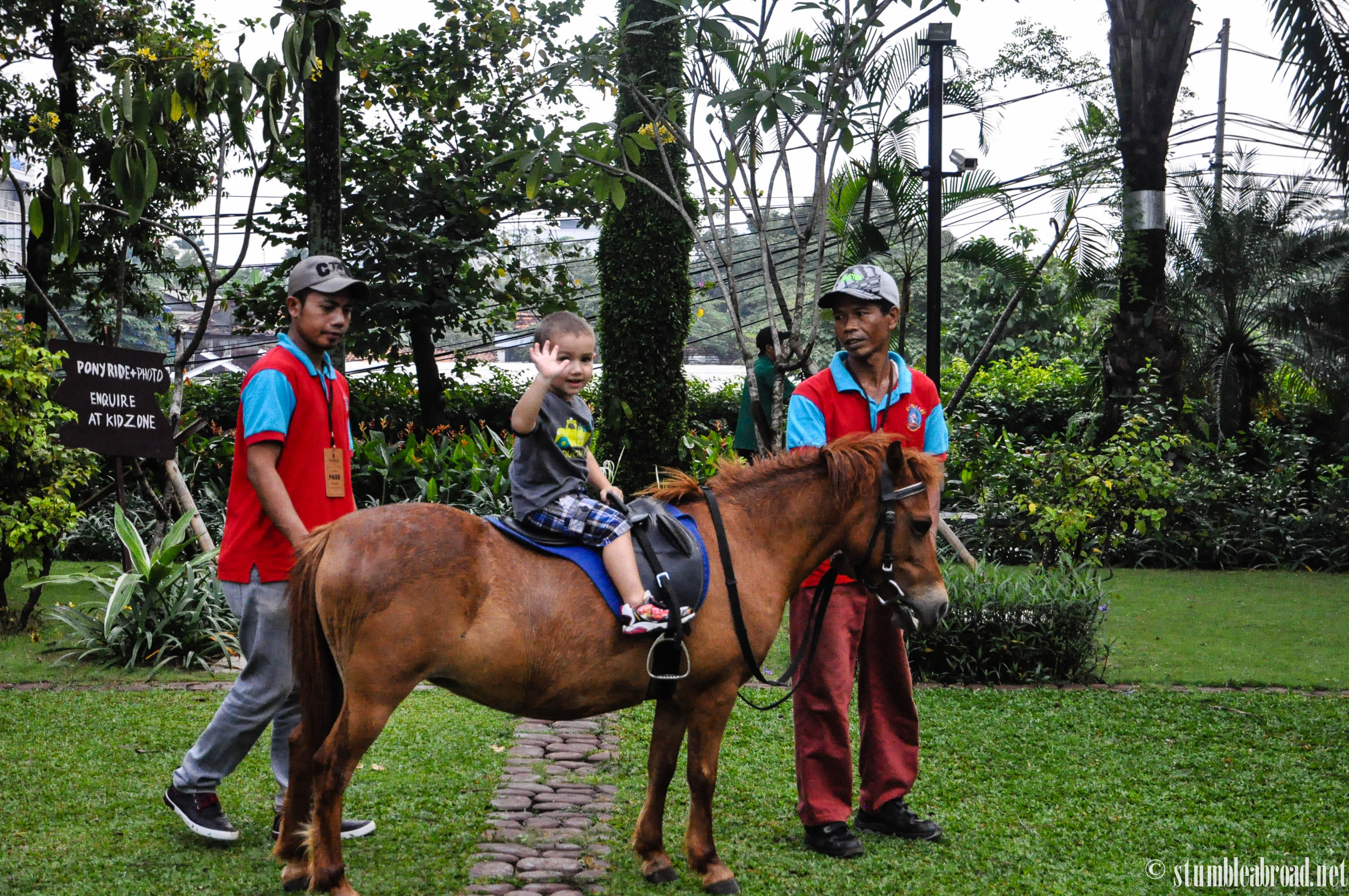 The highlight of the visit for Evan was riding on the cute pony they had on site. My little cowboy was very brave and didn’t hesitate one bit before sitting on the saddle. A few minutes riding on the pony, Evan was back and it was Joshua’s turn to hop on the pony. He didn’t enjoy it as much as Evan did but made it around the garden nonetheless.