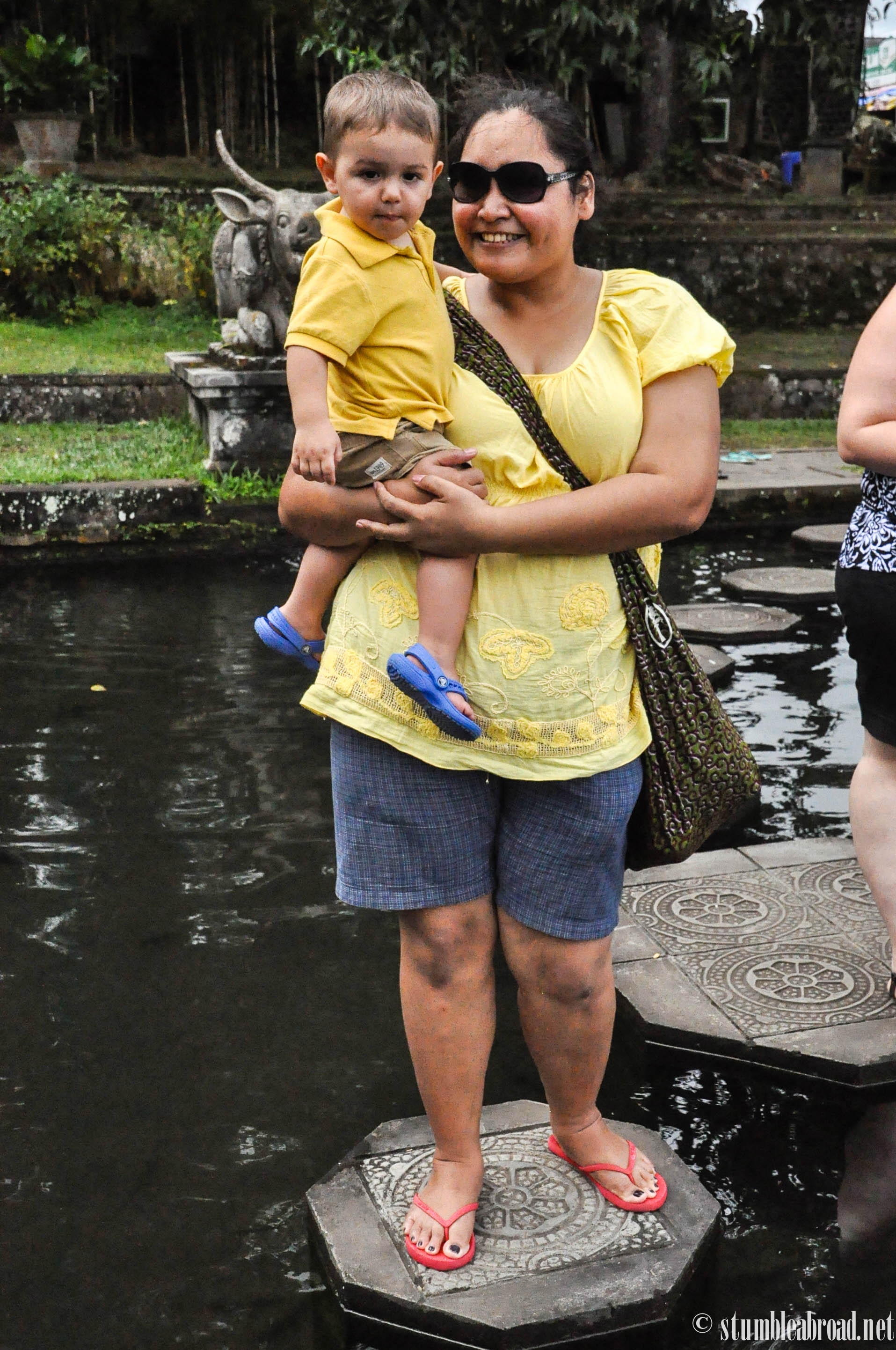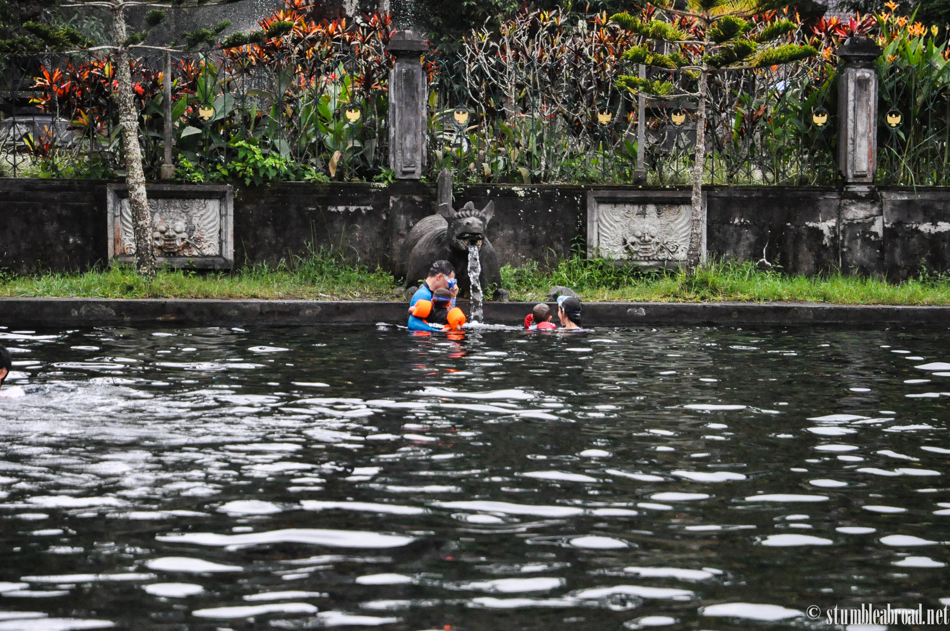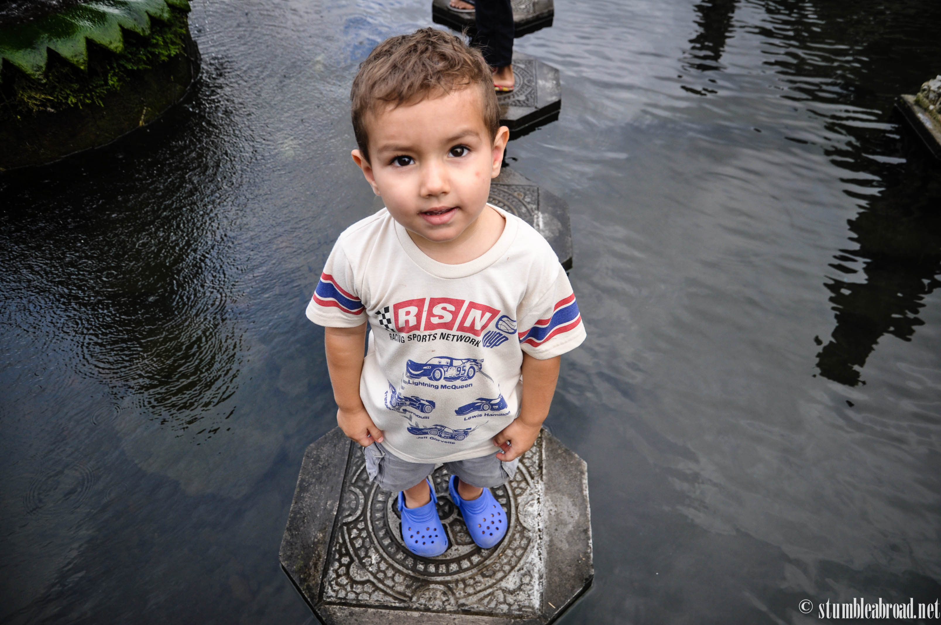 Considering the fact that we didn’t know whether we would have the opportunity to come back to East Bali, our dilemma weighed in favor of the frigid swim and without a second thought we jumped right in. The boys were so excited to swim despite the temperature. The water was crisp and immaculate. It was so clear that you could see tiny baby fish swimming at the bottom of the water.