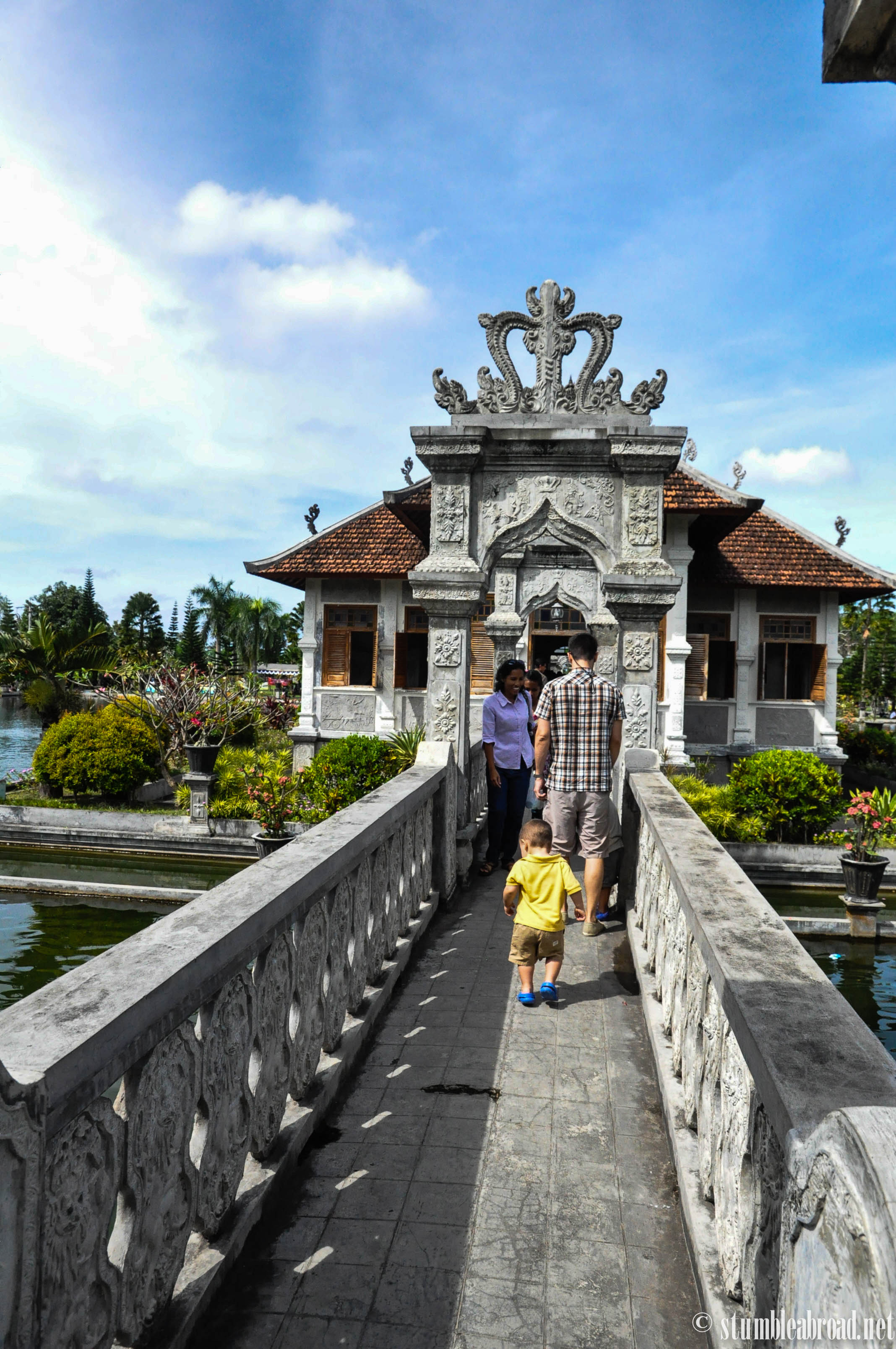Located in the midst of a lagoon and rice paddies within the volcano studded elevations of Bali the Taman Ujung Water Palace was used a summer home by the Karangsem Royal family.As soon as we arrived we noticed we were not the only visitors to this gorgeous palace. The boys were so excited to have some room to roam free and immediately started exploring their surroundings.
