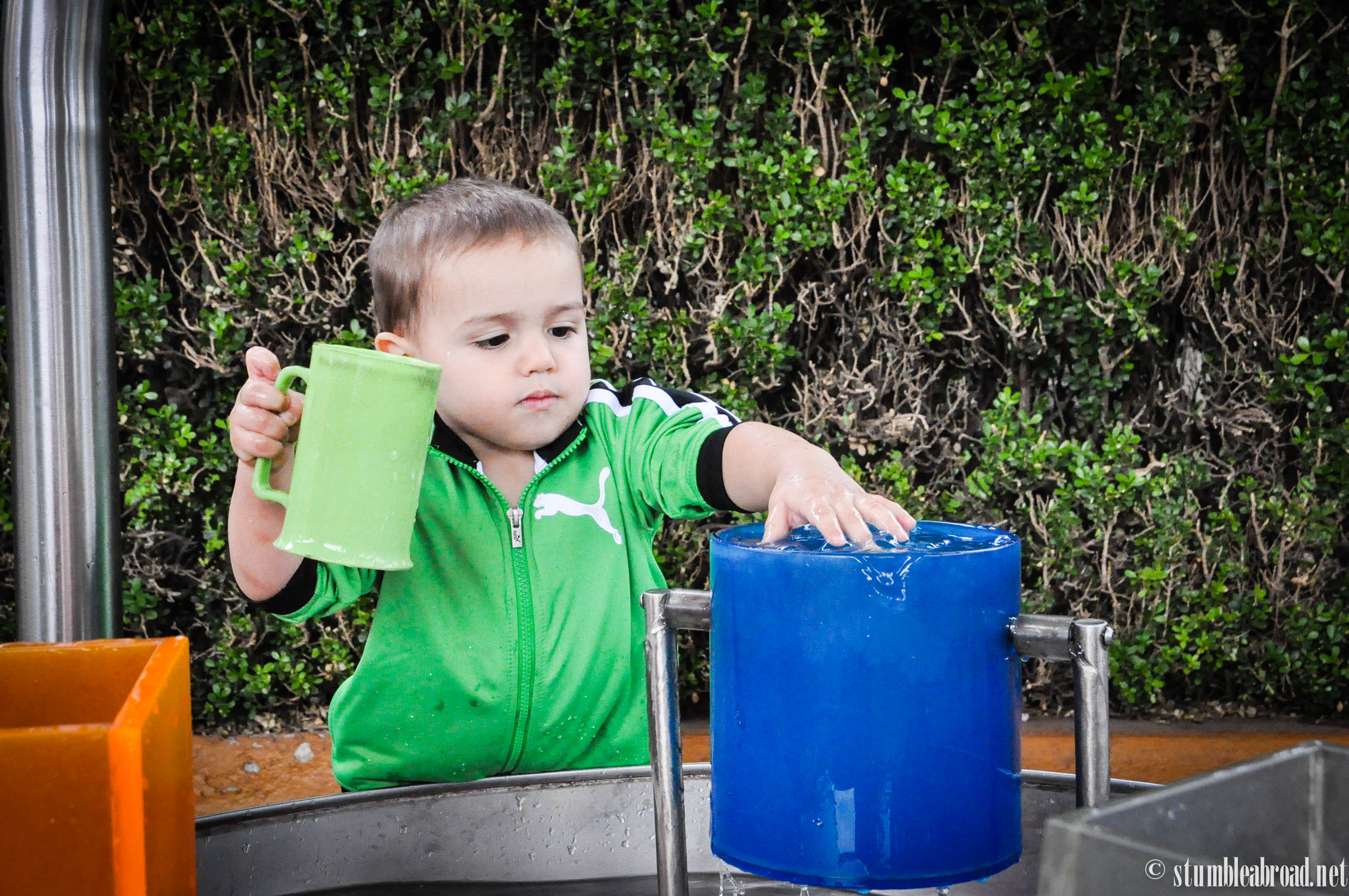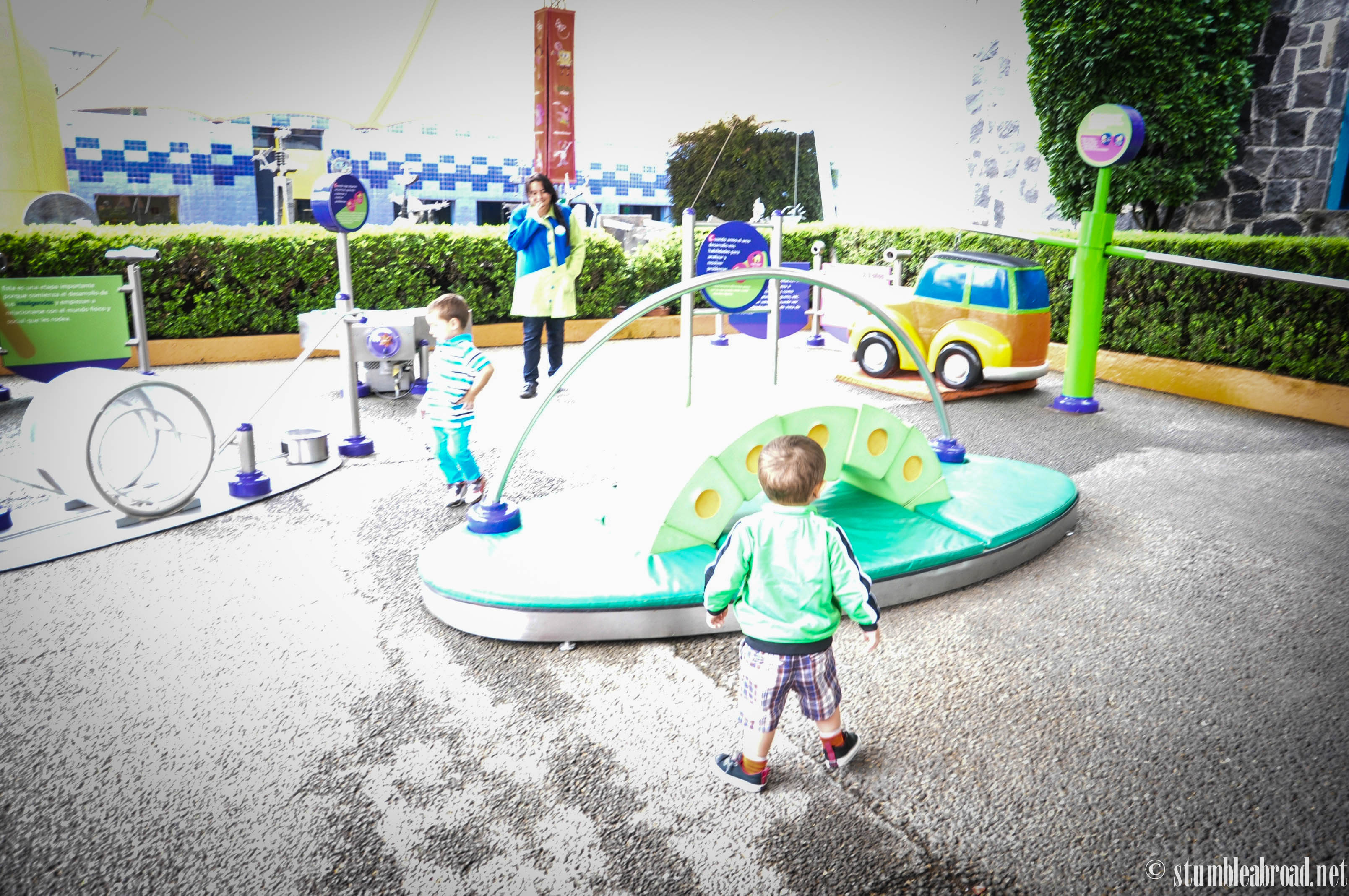 The day was a bit gray and it seemed like rain was imminent so we decided to hit the outdoor area first. The playground was divided by age groups which was fantastic since the toddler area was the perfect size for Evan and Josh. I really loved watching the boys learn about physics in the science area. Without even realizing it they were learning about action and reaction and were greeted by a wonderful “cuate” or friend who helped them in every section of the playground.