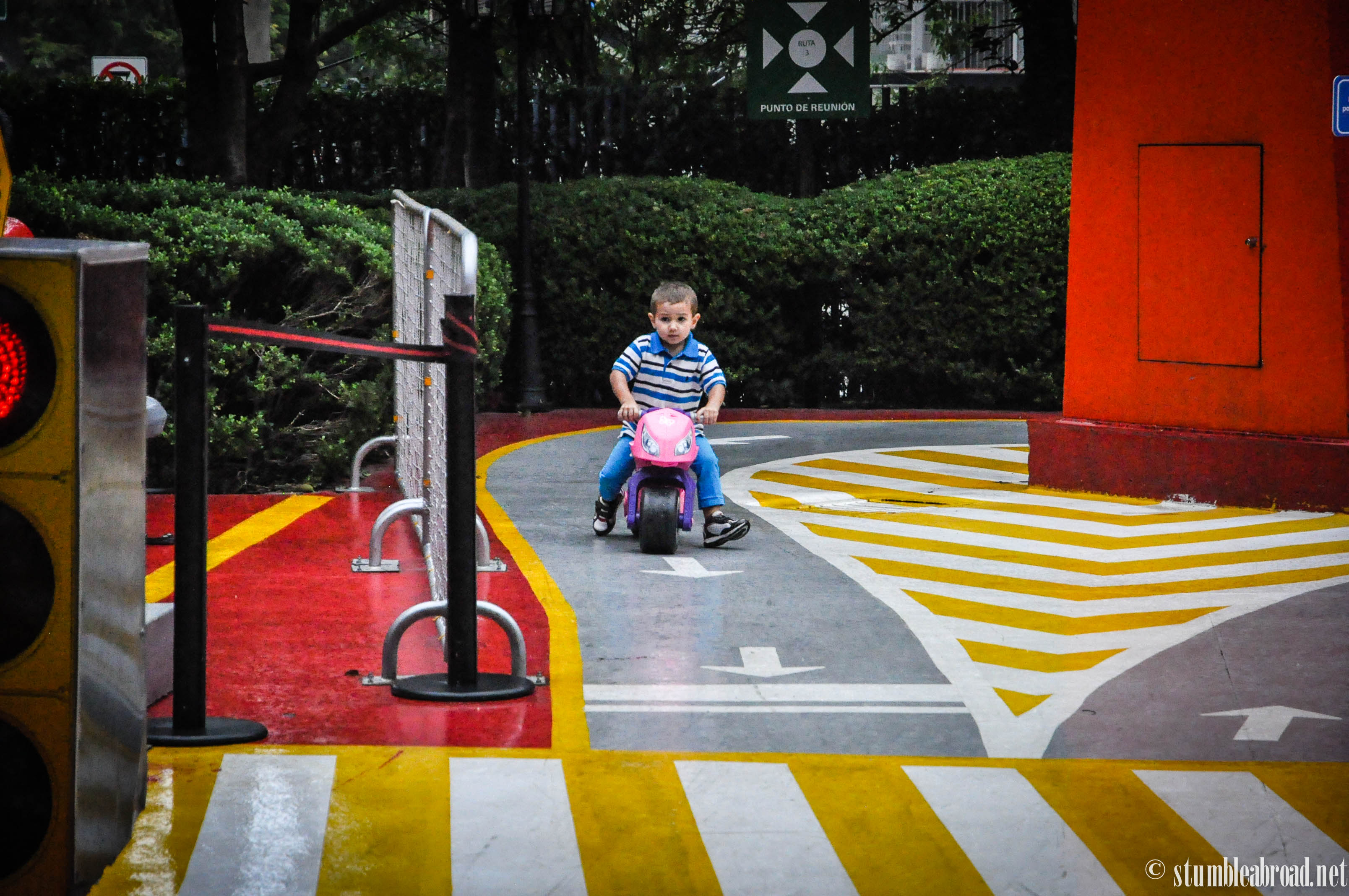 Evan’s favorite section was the transit school where cuates taught kids how to follow pedestrian rules and how to follow traffic directions. Evan loved putting his skills into practice and riding the ride-on toys available while stopping on the stop-lights and allowing pedestrians walk by.