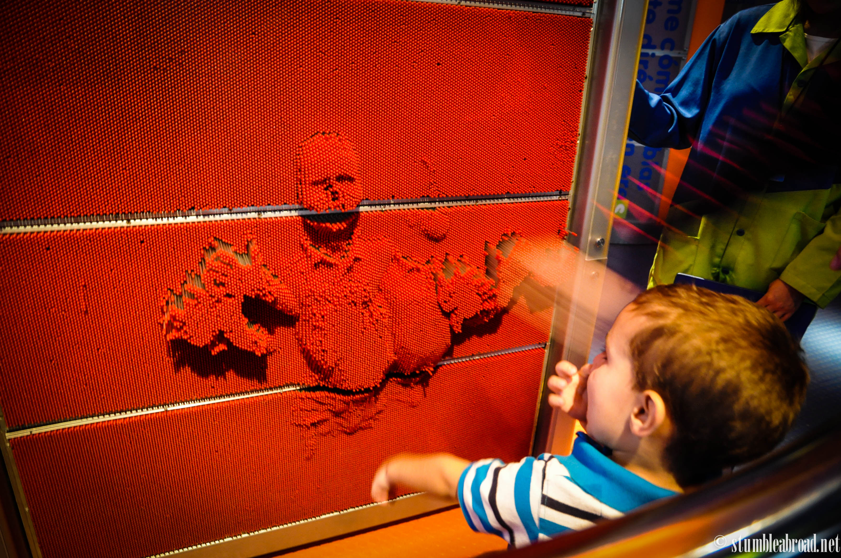The boys started getting tired but that didn’t stop them from being willing to explore the second floor of the museum. Evan played in a radio station and we listened to phone conversations from places all over the world. We were even able to listen to some bahasa and were able to catch a few words here and there. Evan’s favorite activity, however, was the nail bed where he bravely made shapes over and over again. Evan had so much fun doing this that he tried it about 4 times.