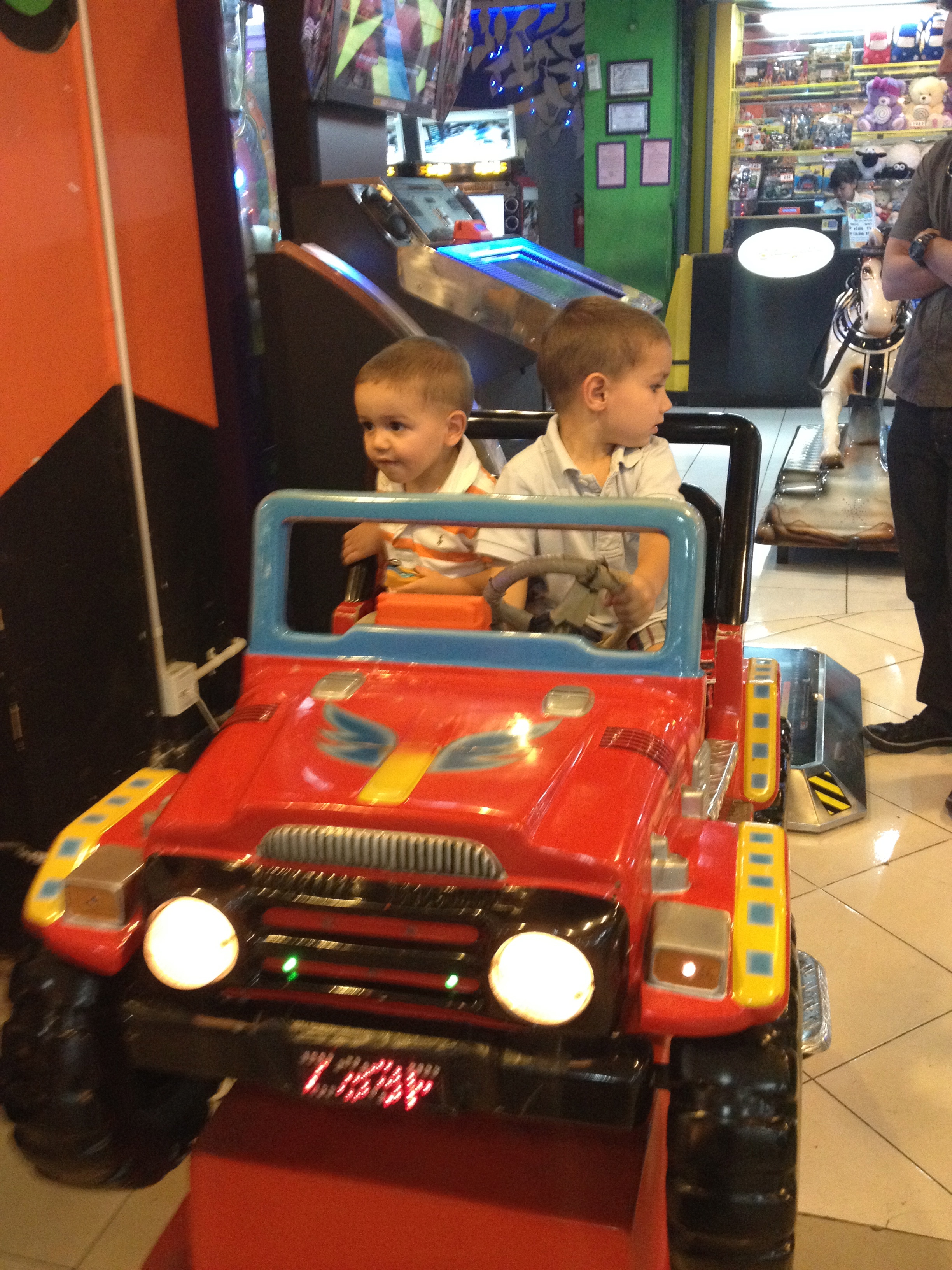 After visiting the museum we walked back to the hotel. We had a wonderful time strolling the clean relatively safe sidewalks of Bandung and really enjoyed the cooler weather. After we packed up and checked out we visited the mall adjacent to the hotel one more time. The boys played for about an hour at Stingers, an arcade game spot before we headed back to the train station.