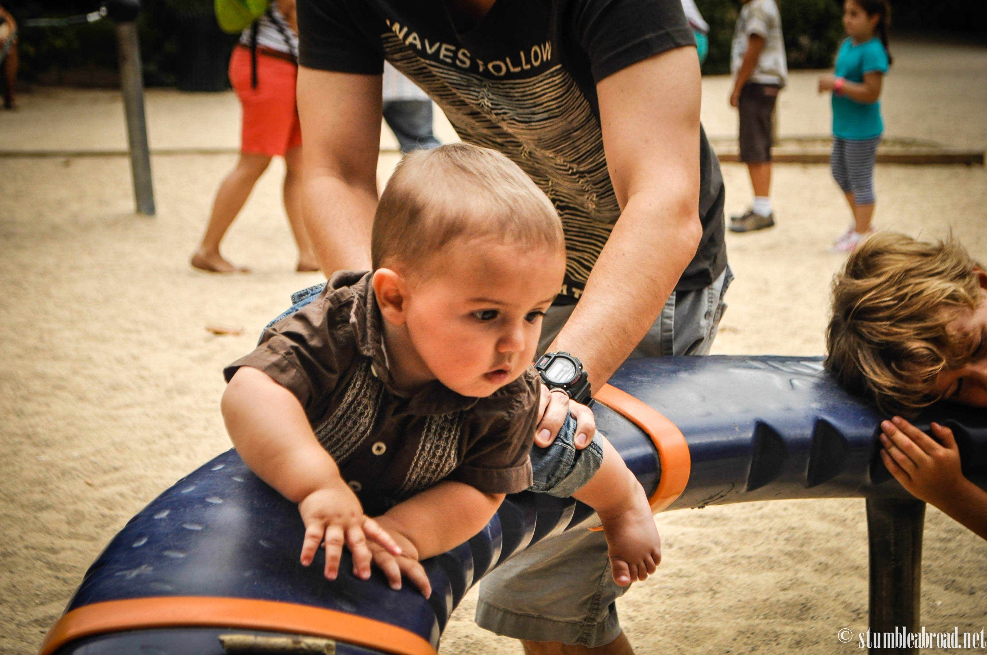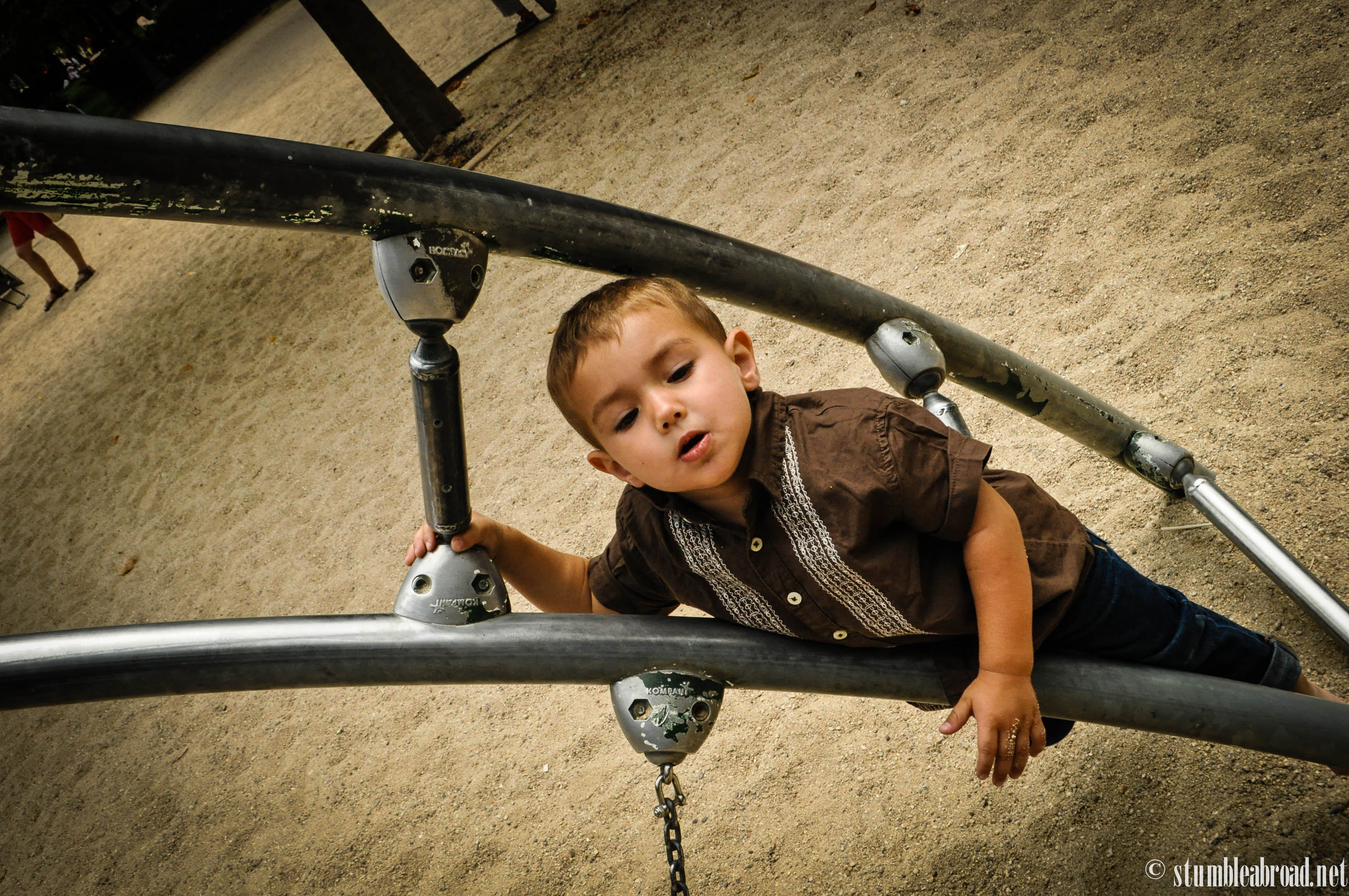 After walking for a few minutes we encountered our first play area. Evan was thrilled and ran directly to the playground where he made new friends right away. After an intense day of sightseeing I am sure he was relieved to have to Evan time and be able to run around like he likes. The playground was amazing. Everything was very safe and the sand on the ground made for a great buffer in case of falls.