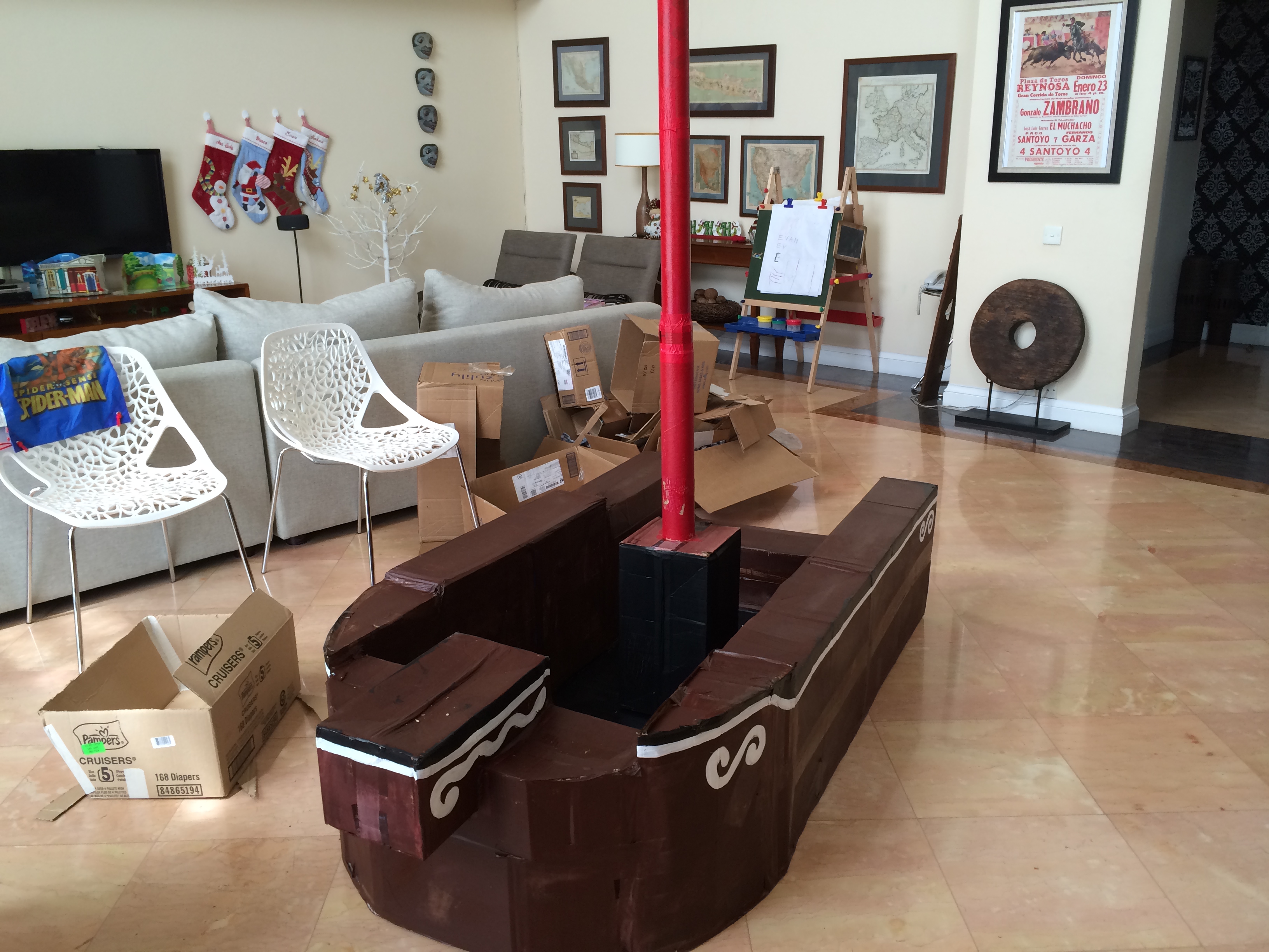 Comme d’habitude my amazing hubby was able to make a structure for the kids to play in. This time he made a pirate ship, complete with a steering wheel (from last year’s party) and a sail. By the end of the party we had a short of shipwreck as the sail capsized but the boat is still holding on and is now in the playroom.