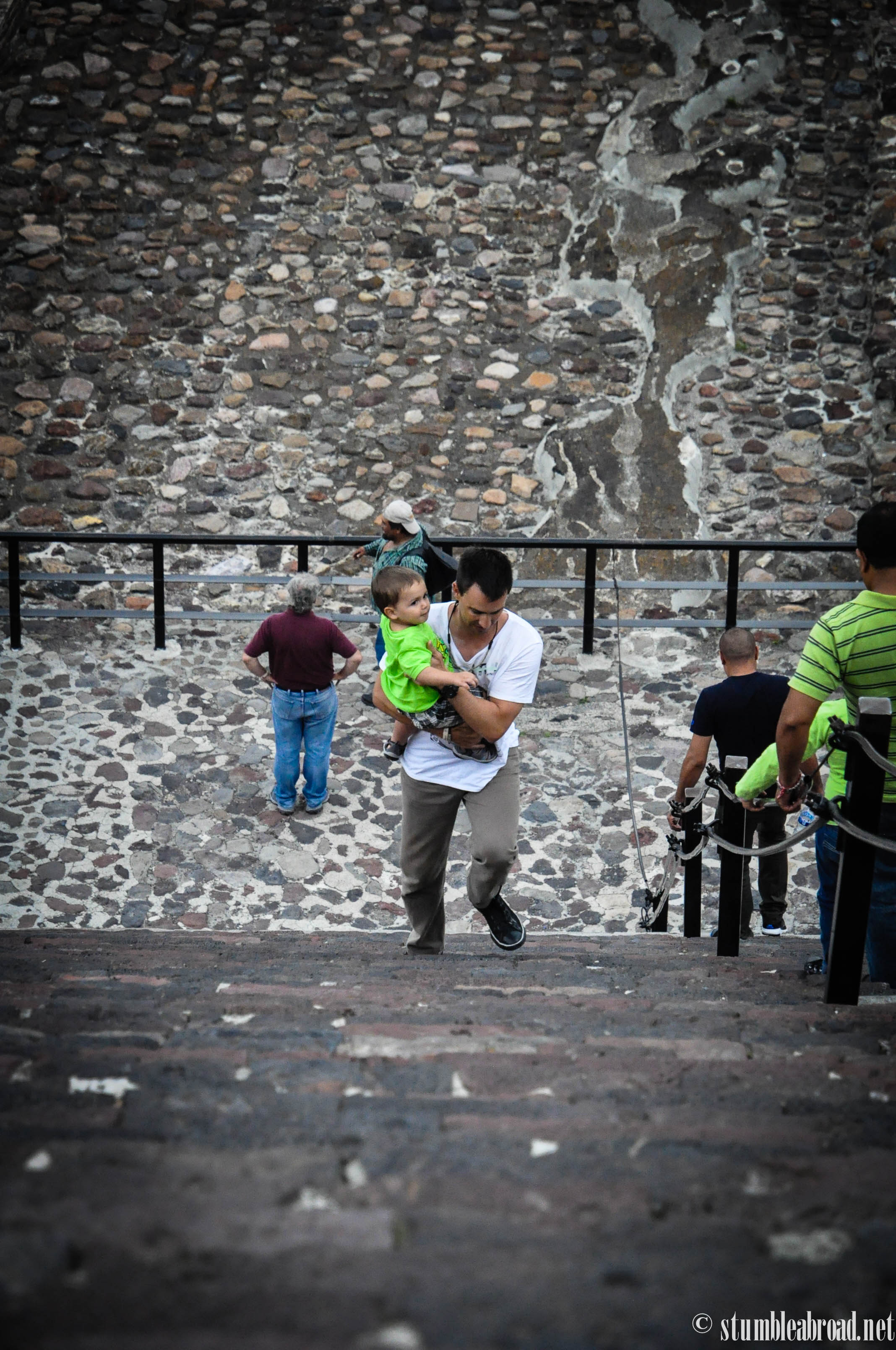 - This place isn’t exactly stroller friendly. There is gravel everywhere so it’s hard to push strollers around. On the other hand you don’t want to haul your stroller up the pyramids. I would go for a carrier or an all-terrain stroller that you would have to leave at the base of the pyramid.