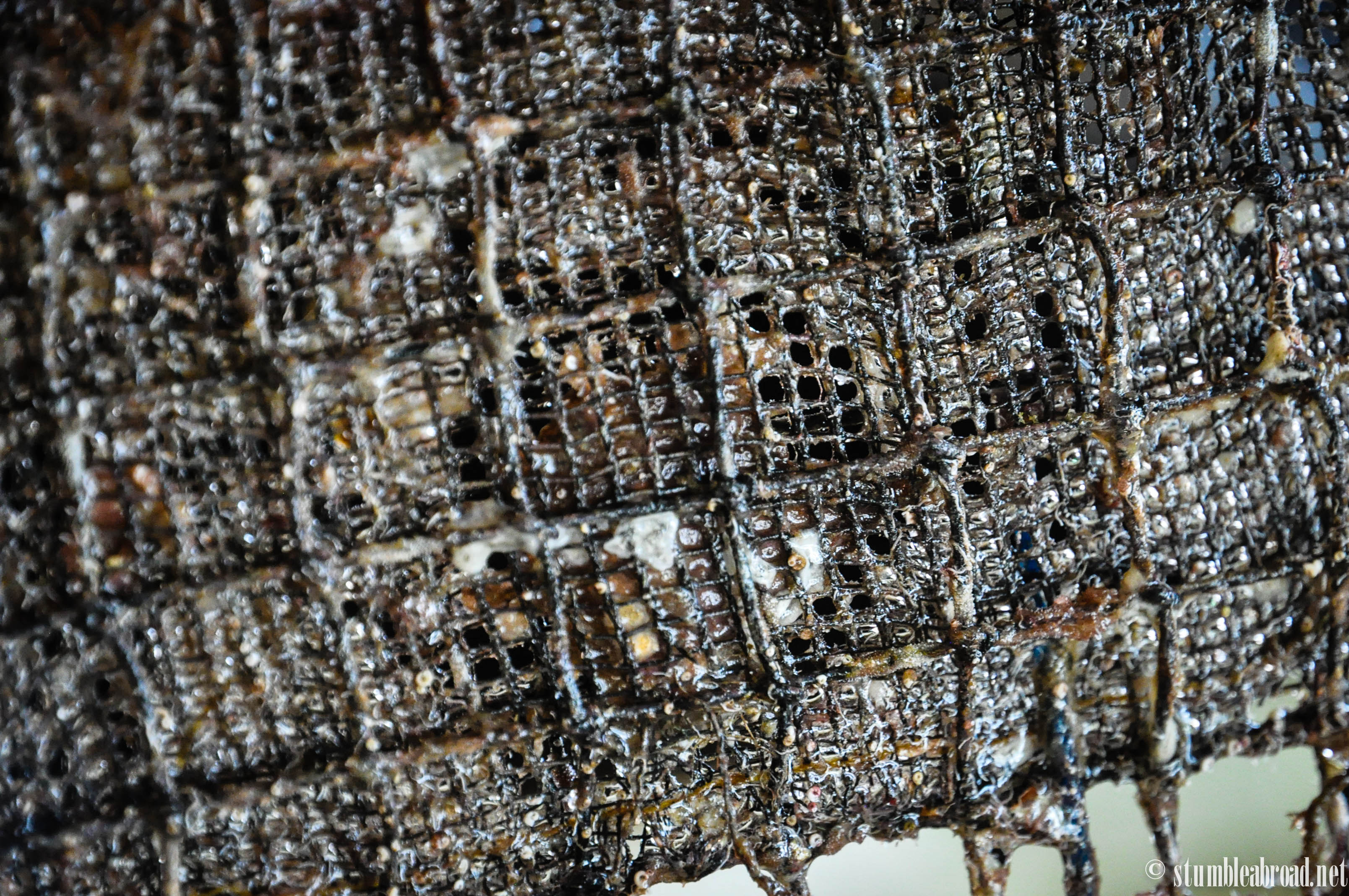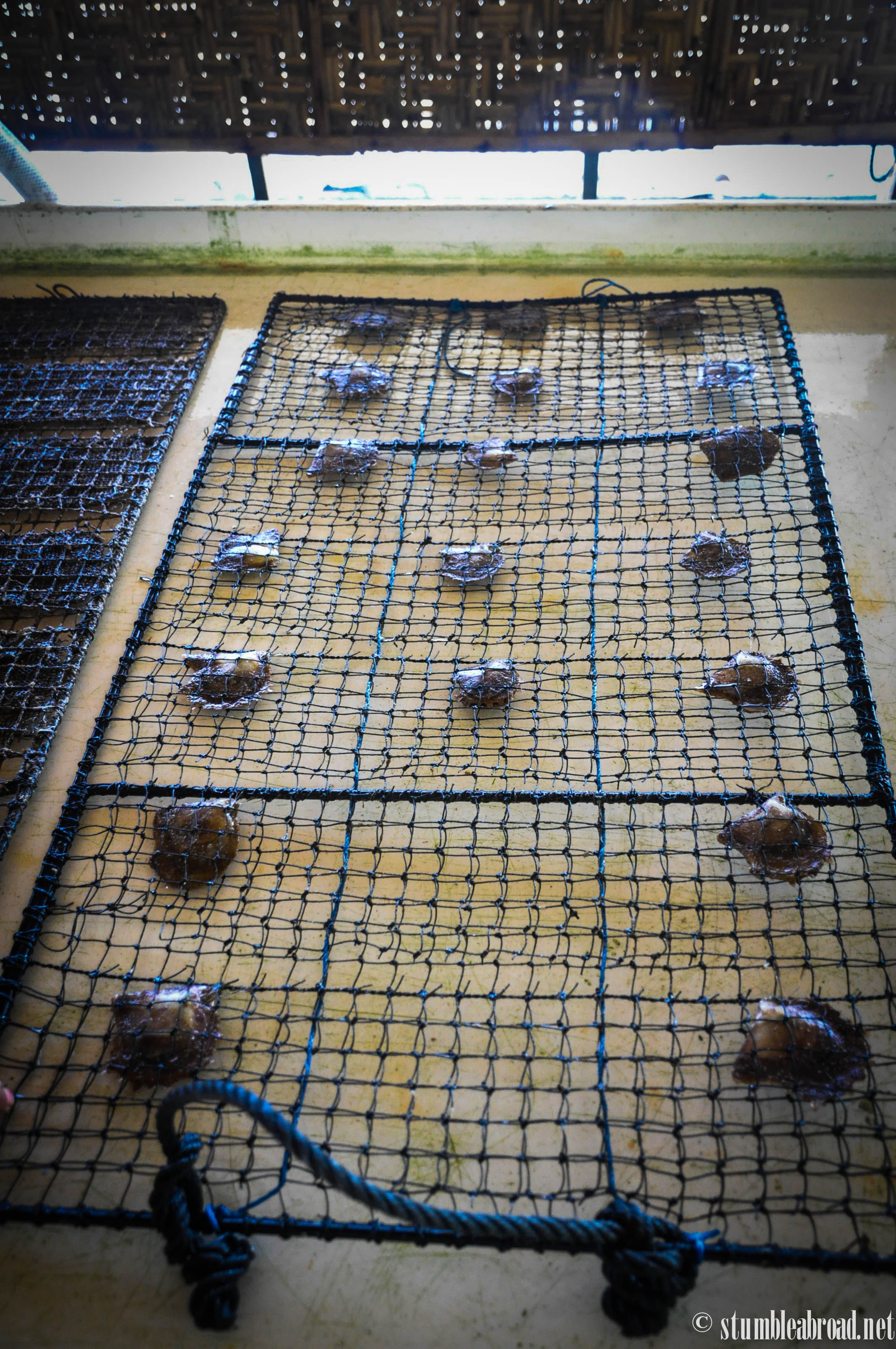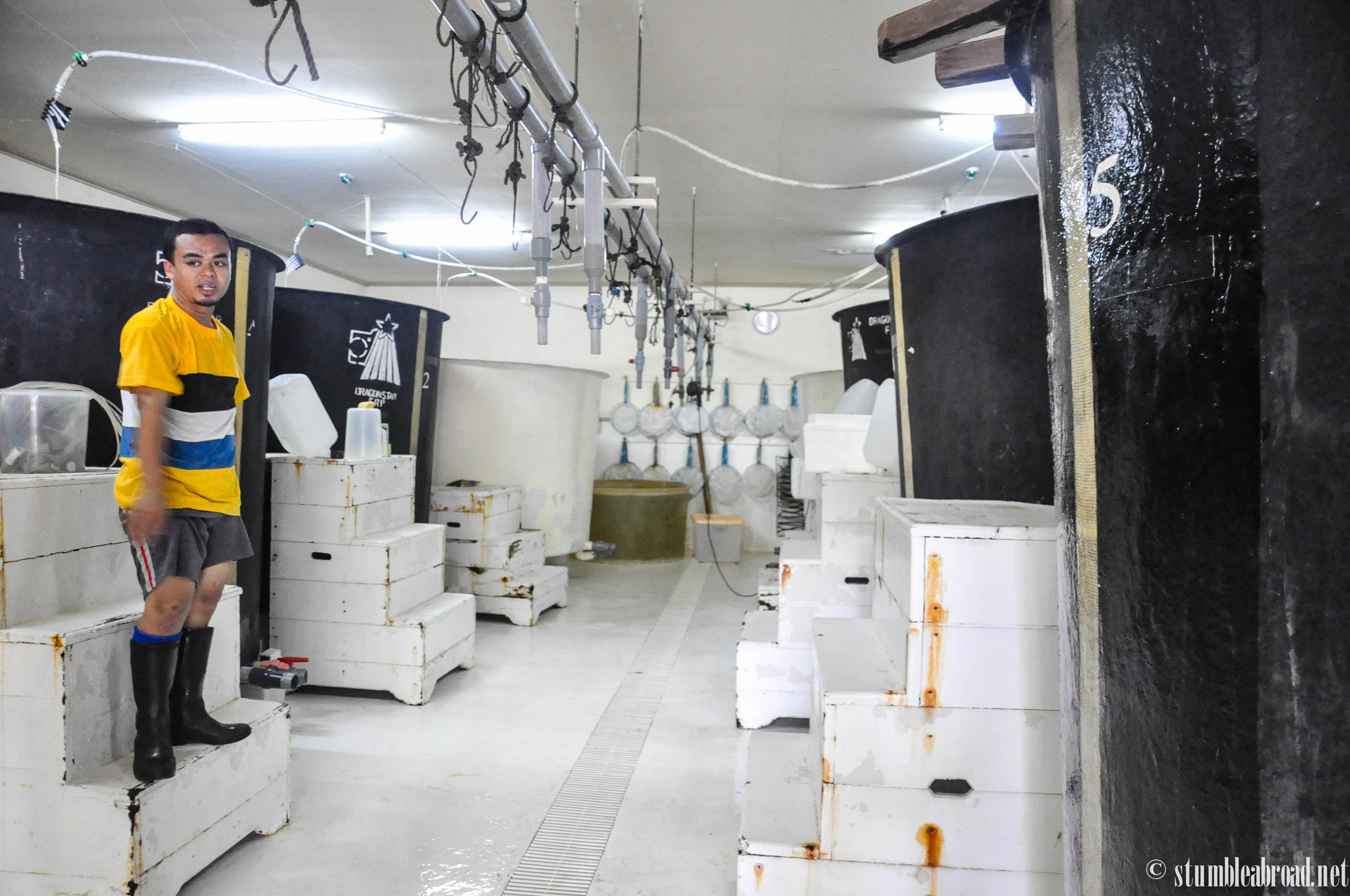 Our first stop in the tour was right outside the cultivation chambers. The guide talked about how long the process actually is and showed us different aged oysters. It was quite incredible to see that in fact it takes them years to grow to the right size to be usable.