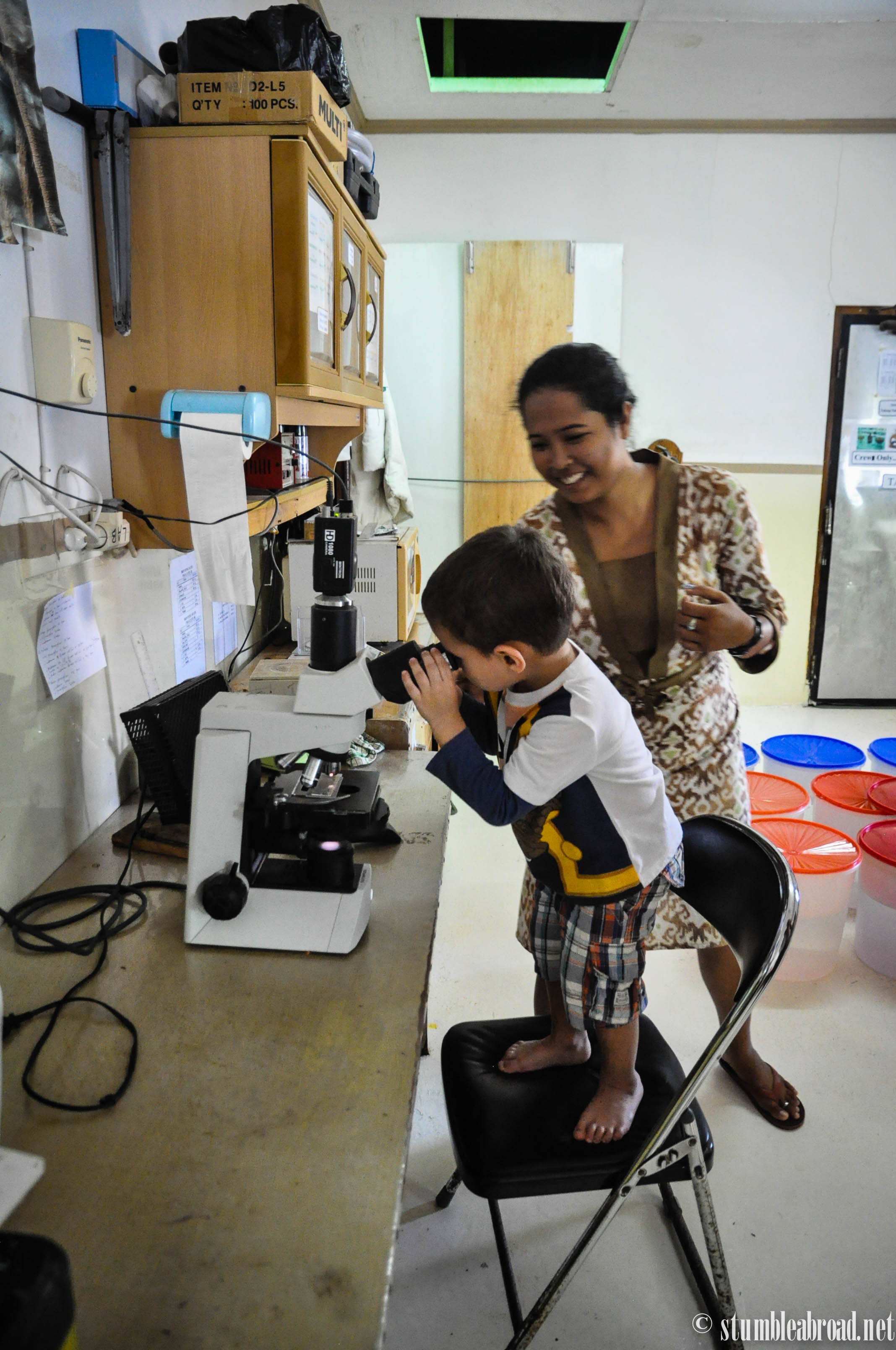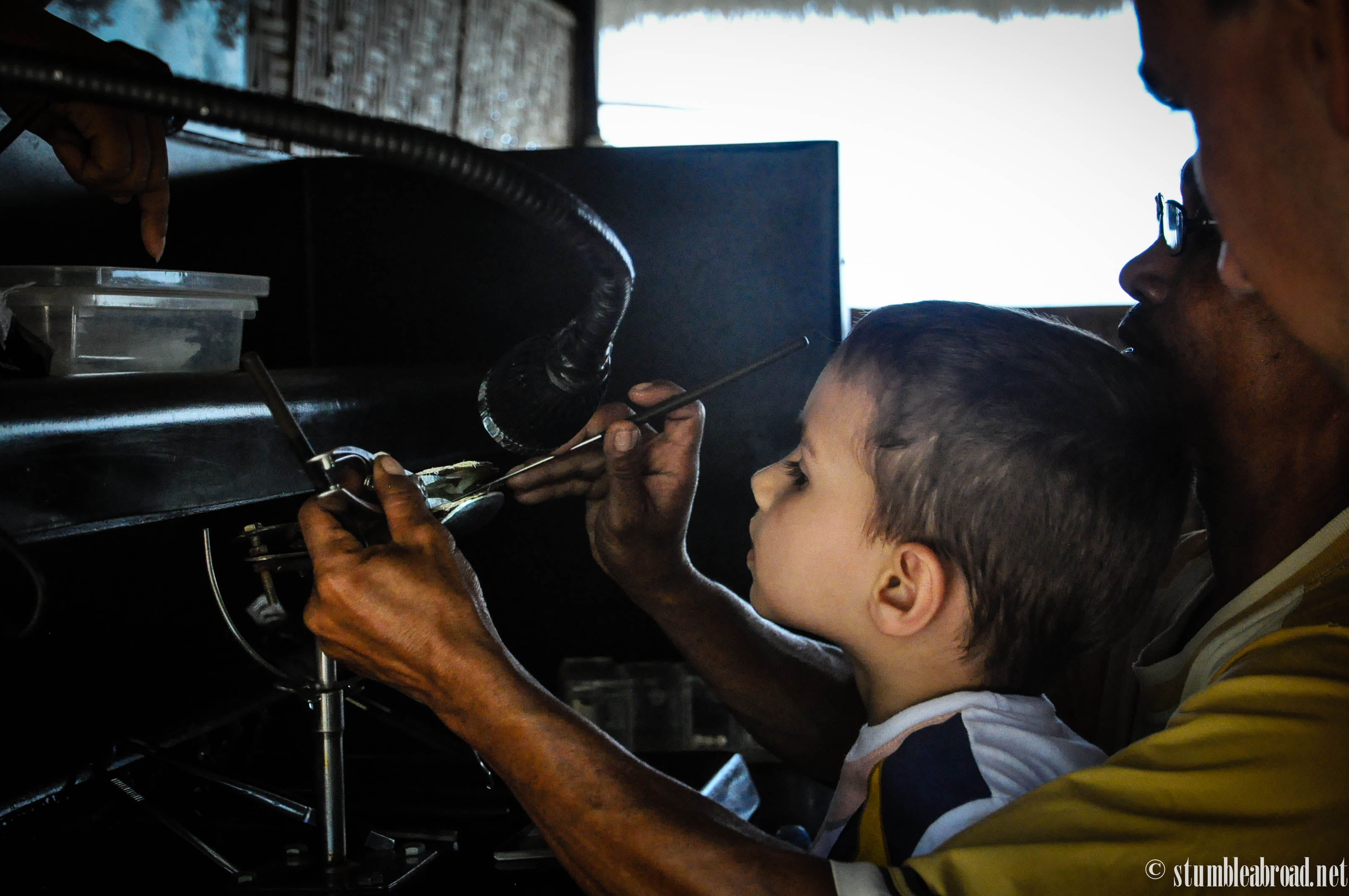 The pearl cultivator was kind enough to let Evan give him a hand. Of course I was nervous that we would drop the pearl of hand it to Joshua who in turn would say “andy, andy (candy)” and gulp it right in. Fortunate none of this happened and Evan was very excited to be able to partake on this experience.