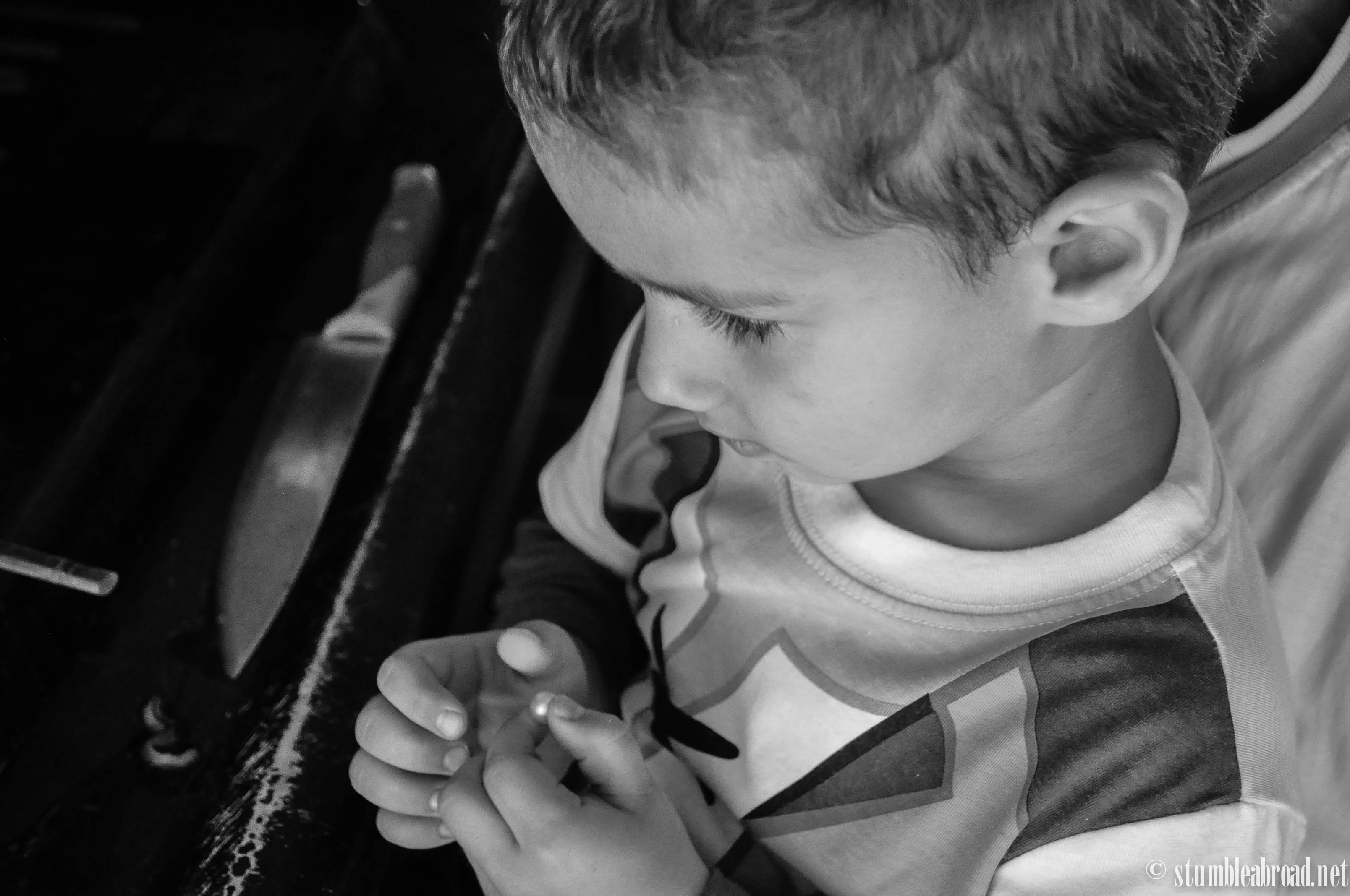 So we started our tour aware that the kids were very likely to get bored a few minutes later. Boy were we glad we were wrong. Our fabulous tour guide was super friendly and was eager to explain the process to Evan and Josh. Naturally Josh was all over the place more interested in digging in the sand and finding random pieces of shells but Evan was actually quite interested and eager to discover what this place was all about.