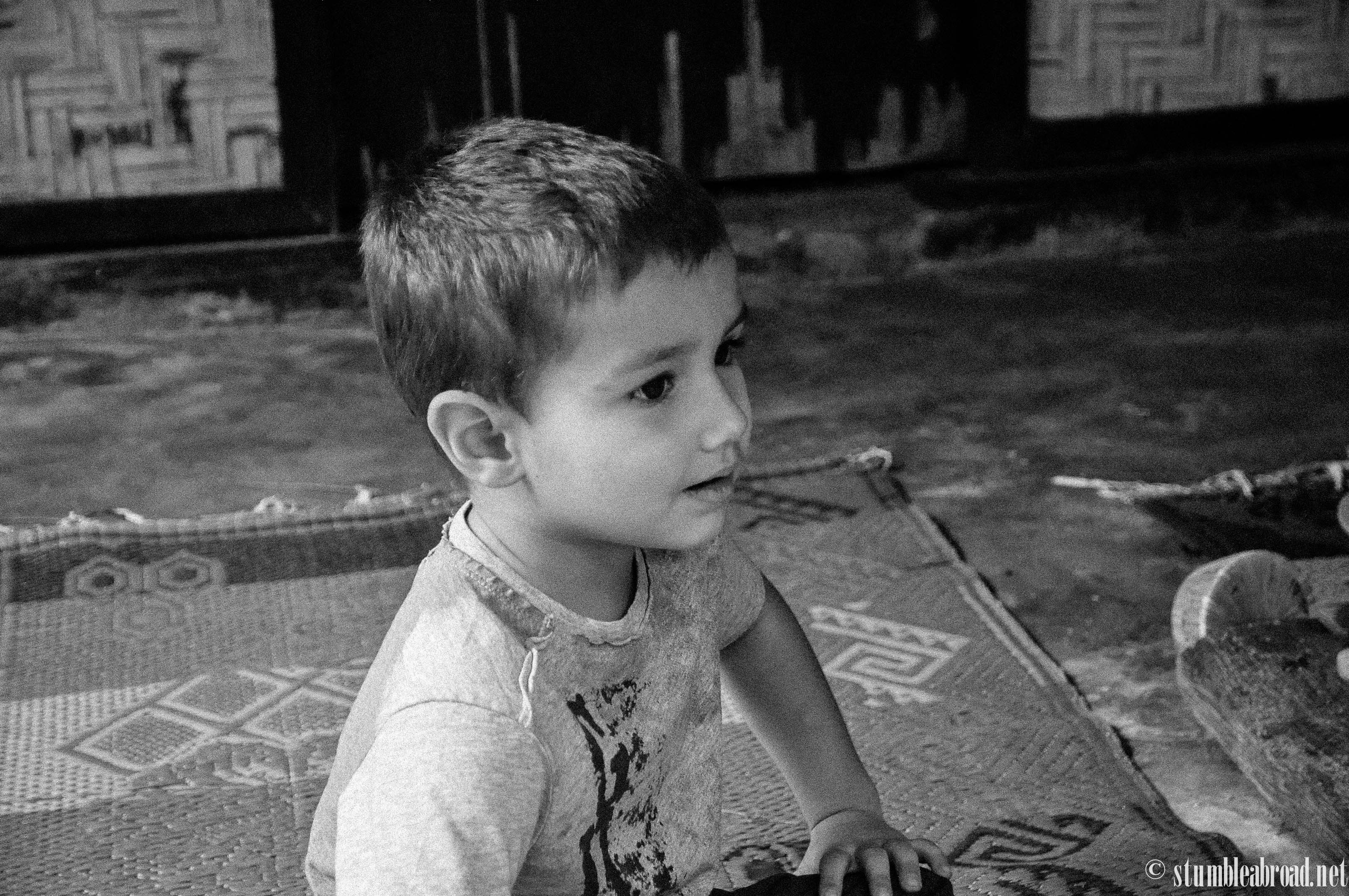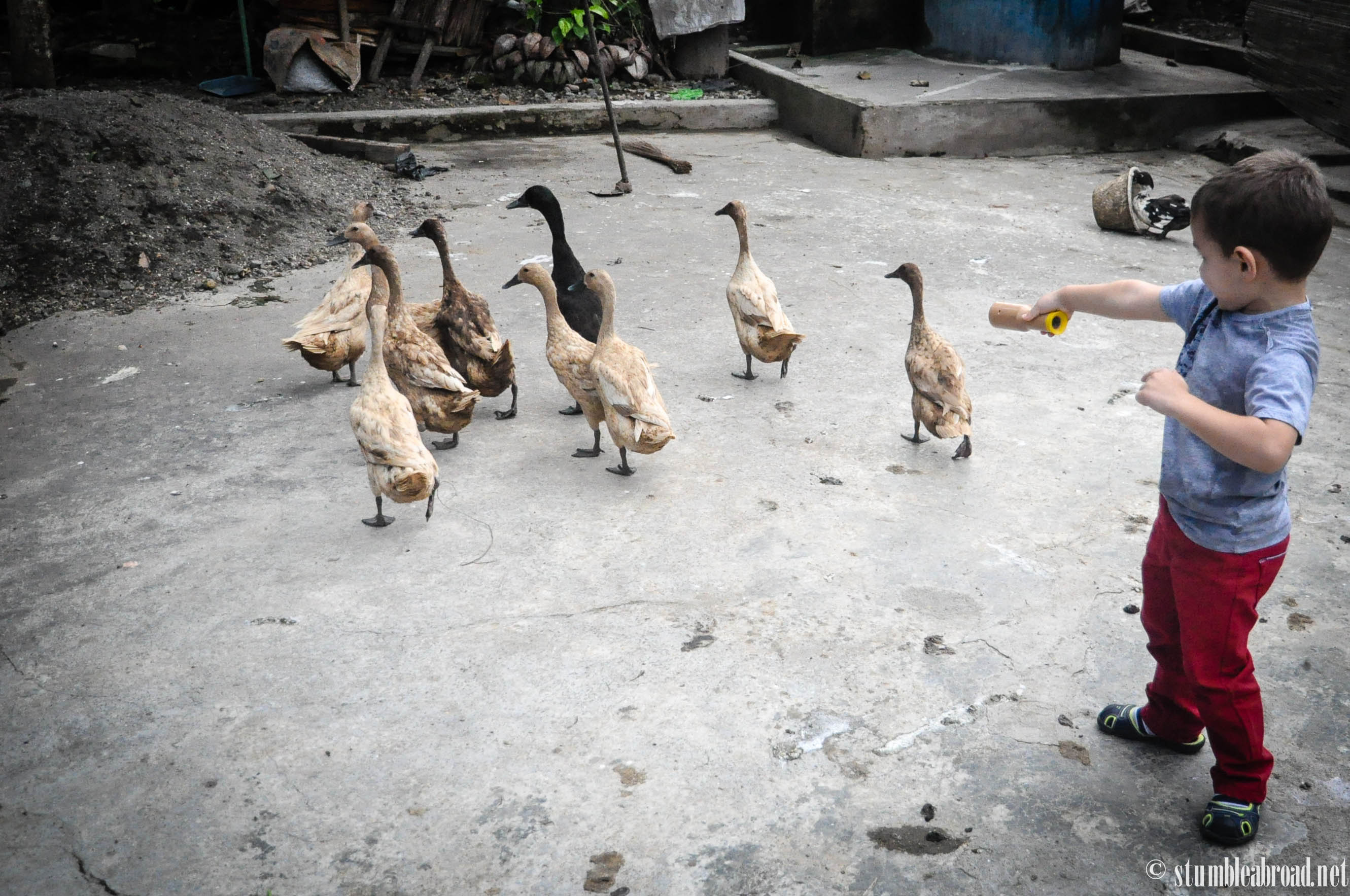 When we went into the kampung the boys got distracted right away by the many furry and feathered friends at the village. After harassing playing with the ducks for a few minutes we continued our trek into the Kampung. It turned out this was just like a neighborhood where everyone knew each other and supported each other in doing their business.