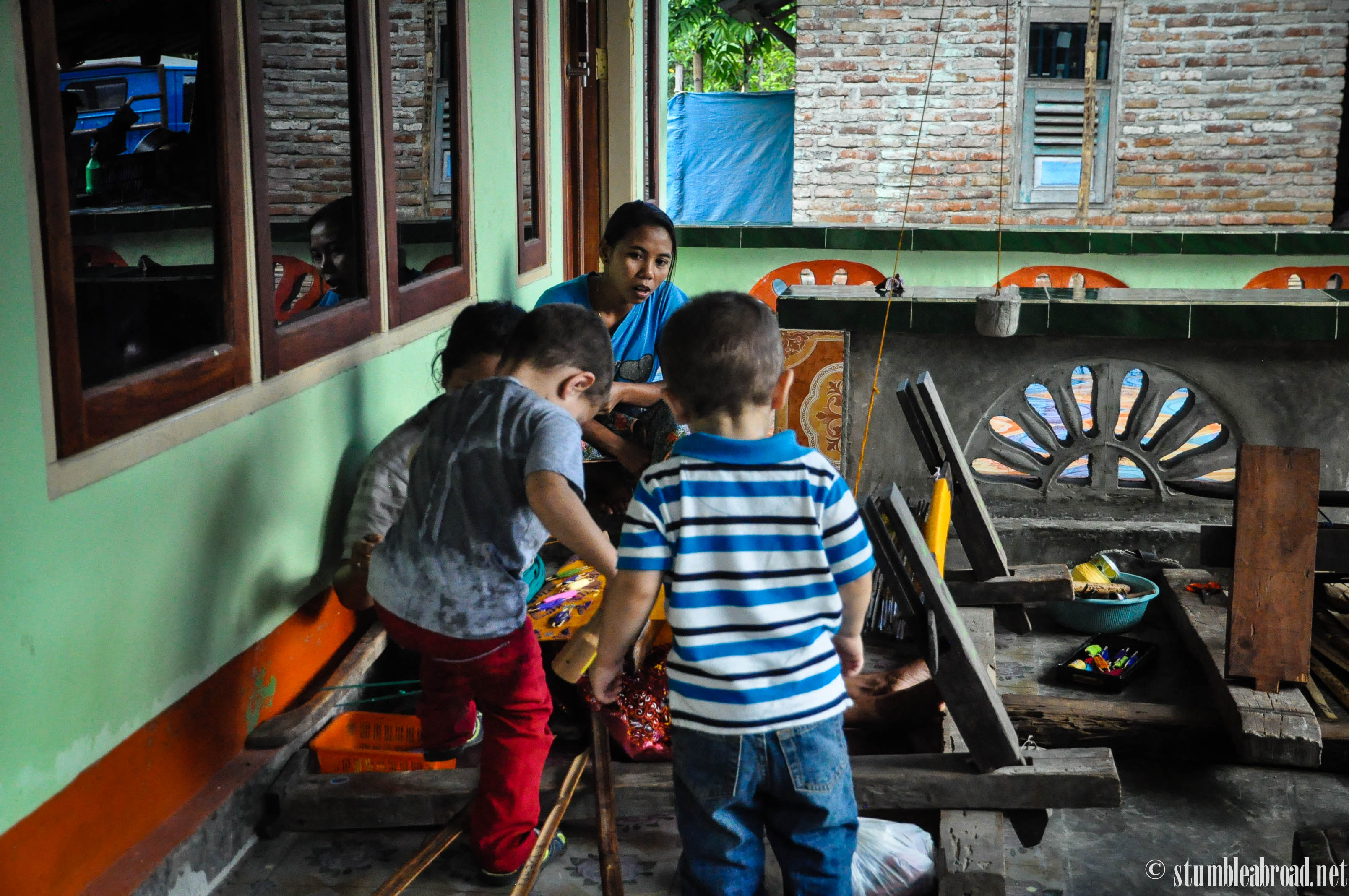 Evan and Joshua was actually very interested in the process and were trying to touch everything. I was just praying they wouldn’t break something! The ladies were so sweet and their kids were very intrigued by the bule (foreign) kiddos. Evan wanted to play with their bikes and we had to drag them out of several houses. They were already trying to take their shoes off and invite themselves in. Not that this doesn’t happen back home, but at least we do know our neighbors.