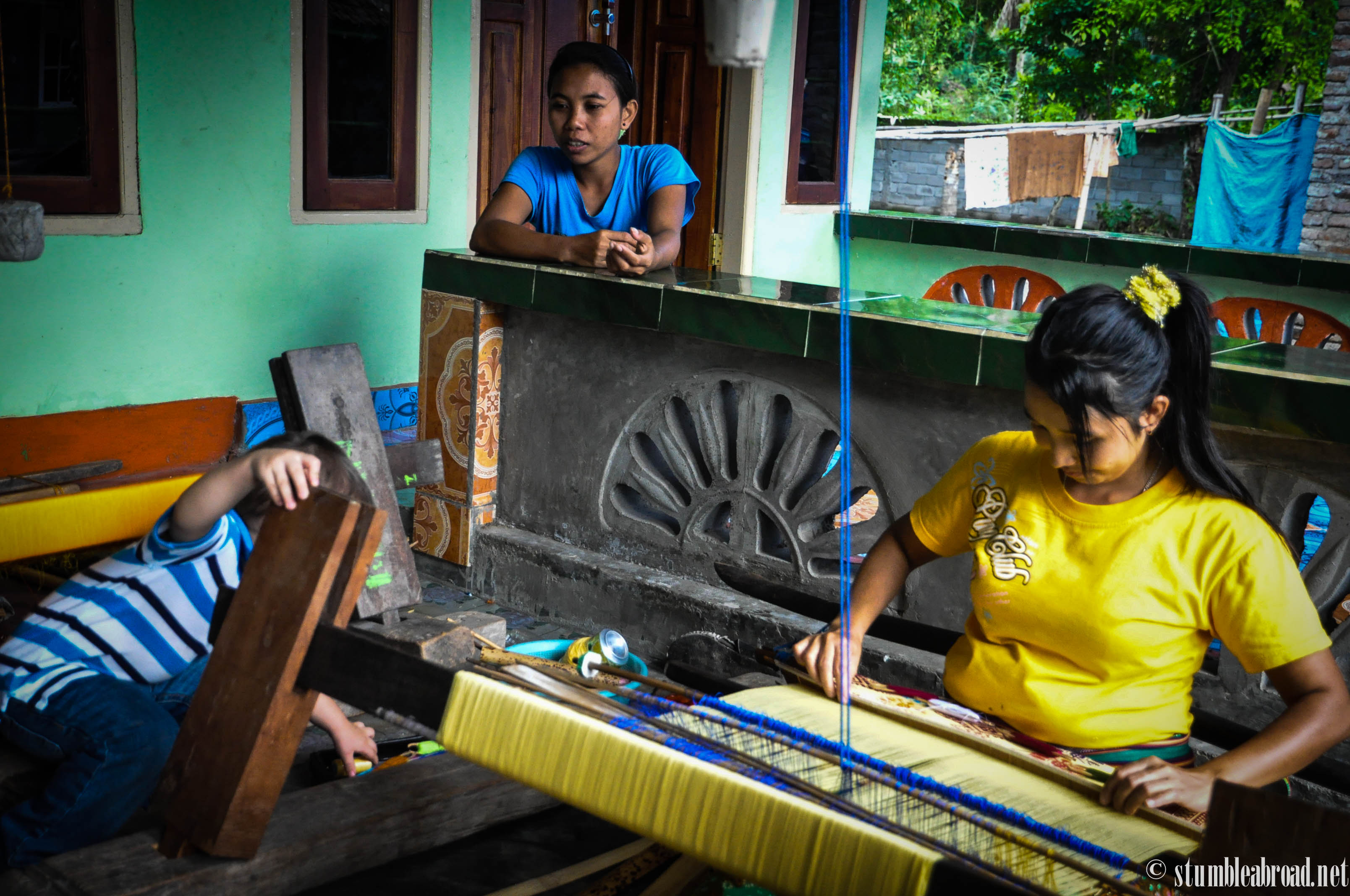 As we headed down a narrow two-way street we were excited to see were we would be lead to. All throughout the ride down that street we saw dozens of women working their craft as our driver explained that weaving and selling textiles is the main source of income for many of the families in Lombok. He also mentioned that only women weave and that young girls are taught the craft from an early age.