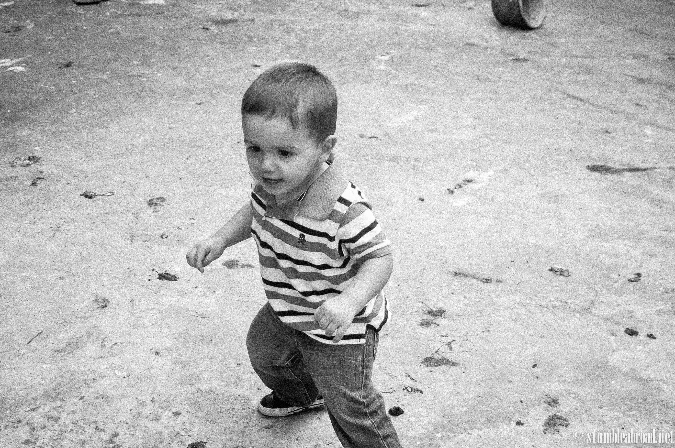 As we were about the leave the boys had to make a quick stop to meet a new friend and play with the thread warping mill. We let them play there for a bit and then went our way.