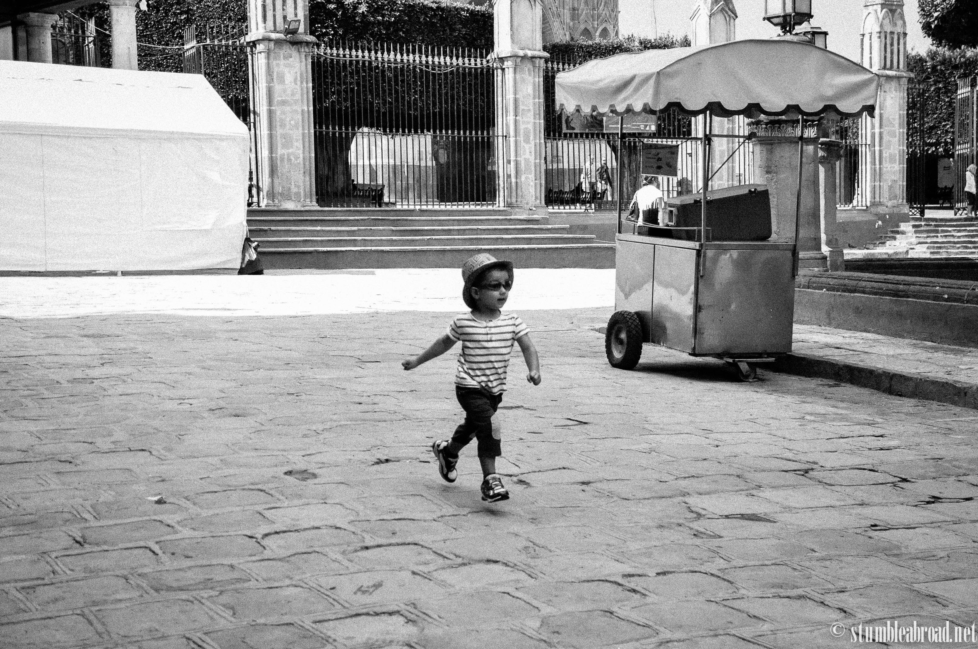 A few meters from our hotel was the main square where a gorgeous coral-tinted parish adorns the scenery. The boys enjoyed chasing pigeons and I was so excited to find a few Mexican delicacies in the form of street food.